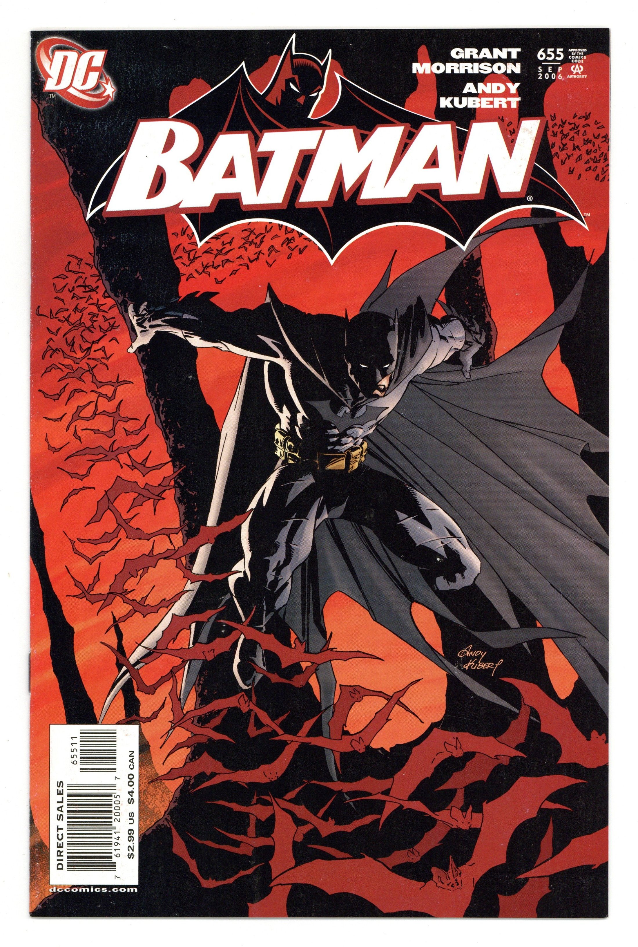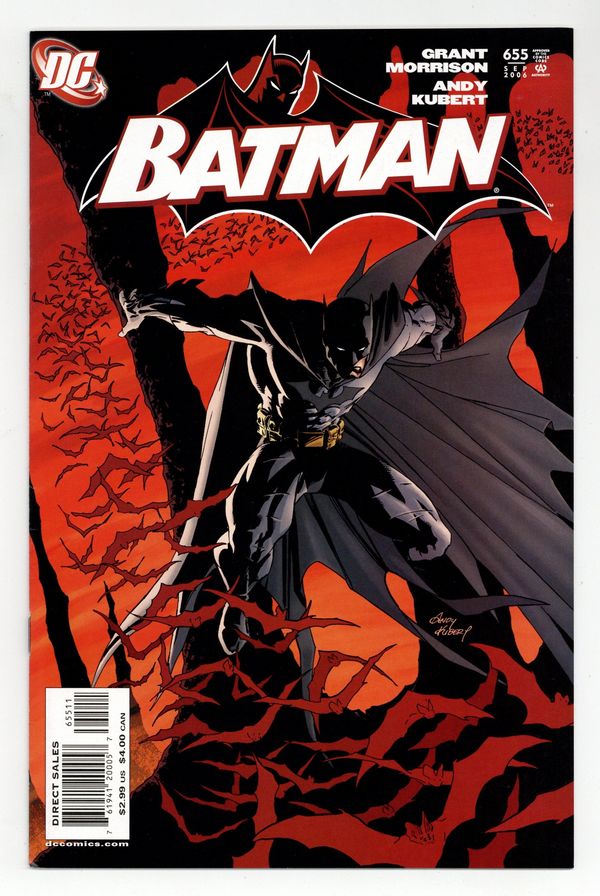 Direct Edition. Written by Grant Morrison. Art and cover by Andy Kubert. Variant cover by Adam Kubert. Comic legends Grant Morrison (ALL STAR SUPERMAN, SEVEN SOLDIERS) and Andy Kubert (Ultimate X-Men, 1602) come together for Part 1 of "Batman and Son." After a harrowing battle with the Joker high atop Police Headquarters, Batman decides to let Bruce Wayne step into the light. But just who is watching billionaire Bruce Wayne? And what does their plan have to do with Man-Bat? 36 Pages, Full Color. Cover price $2.99.