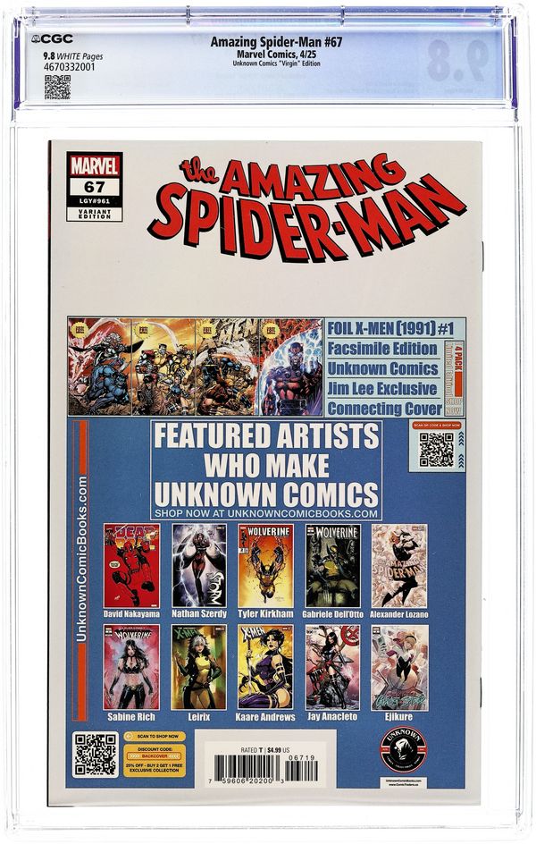 Unknown Comic Books Exclusive Virgin Cover by Alexander Lozano. Written by Justina Ireland. Art by Andrea Broccardo. THE 8 DEATHS OF SPIDER-MAN CONTINUES! With his patron, Cyttorak, attacking the world, Juggernaut won't just sit aside. But he's not a solo act… THE X-MEN GET INVOLVED TO HELP SPIDER-MAN SAVE THE WORLD! 32 pages, full color. Rated T Cover price $4.99.