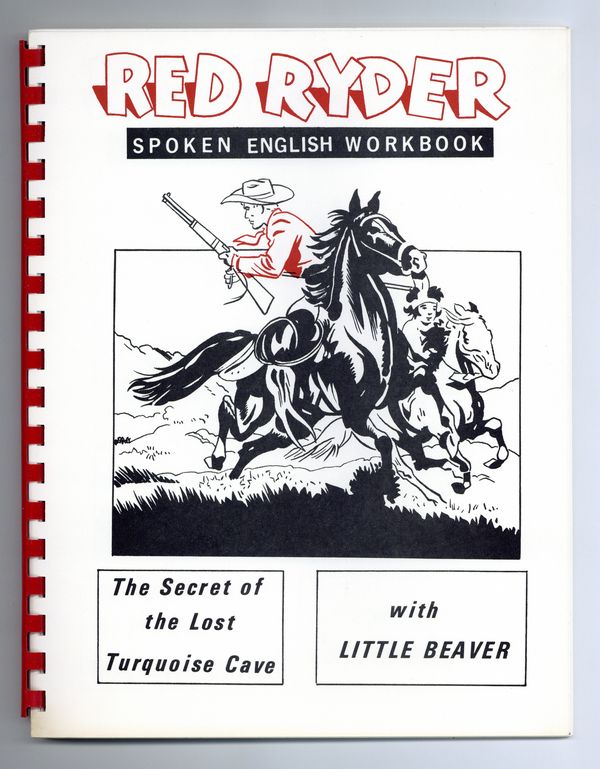 Published 1970 by Glen D. Johnson.$50.00Edited by Glen D. Johnson. Cover illustrated by Pete Morisi. One volume in a series of four featuring various comic characters. Used in "English as a Second Language" classes in a Navajo school. Story in this: "The Secret of the Lost Turquoise Mine" written and illustrated by Fred Harman. Comb binding, 8.25" x 10.5", 44 pages, B&W.