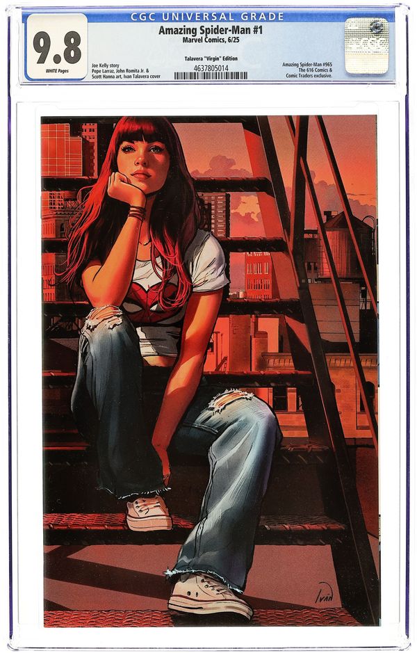 The 616 Comics and Comic Traders Exclusive Virgin Cover by Ivan Talavera. Written by Joe Kelly. Art by Pepe Larraz; John Romita Jr. ALIVE & THWIPPING! The next era of AMAZING SPIDER-MAN has arrived! Peter is, shockingly, without a job and looking for gainful employment, but his job search is interrupted by a RAMPAGING RHINO who is but the tip of a sinister iceberg. What major Spider-Villain is working behind the scenes weaponizing other Spider-Villains including one we havent seen in OVER SEVEN YEARS?! Also, what is that Goblin-free Norman Osborn up to anyway? 40 pages, full color. Rated T