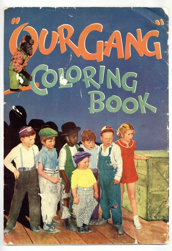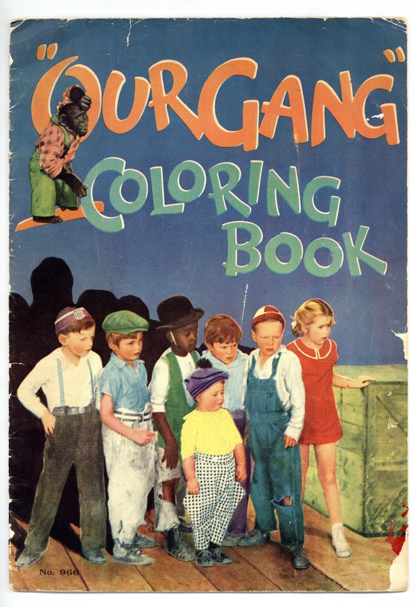Saalfield #966 - 1933. Features 26 B&W plates to be colored with 14 chromolithograph plates (duplicates of black & white plates) as examples. Includes stills from "A Lad an' a Lamp", "Mush and Milk" and "The Kid from Borneo"; and cast members Bobby "Wheezer" Hutchins, Dorothy DeBorba, Matthew "Stymie" Beard, Dickie Moore, George "Spanky" McFarland, Tommy Bond and Pete the Pup.10.5" x 15", 24 pages, PC/PB&W.