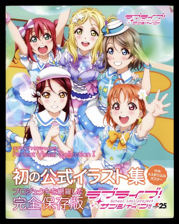 Art book featuring illustrations from the Love Live series. Art from magazines, CD covers, school festival, cards and other promotional material. Softcover, 9-1/4" x 11-3/4", 112 pages, full color, Japanese language.