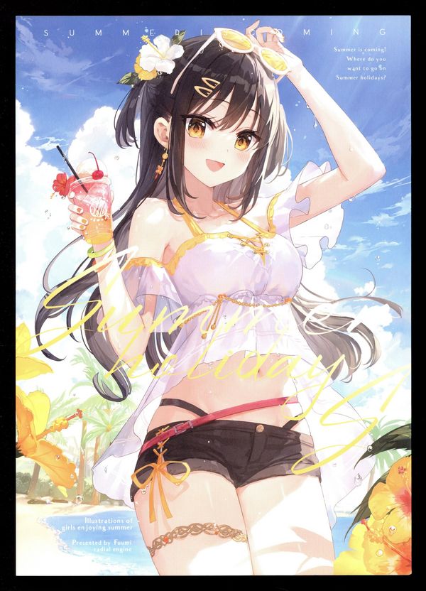 Art book featuring the work of Fuumi. Illustrations of girls enjoying summer. Softcover, 8-1/4" x 11-3/4, 32 pages, full color, Japanese language.