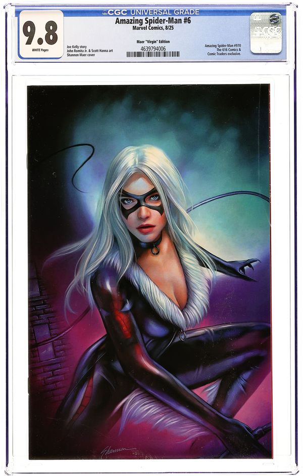 The 616 Comics and Comic Traders Exclusive Virgin Cover by Shannon Maer. Written by Joe Kelly. Art by John Romita Jr. HELLGATE'S OPENING…PUNCH! PETER PARKER's life has been worse. He's got a steady job. BLACK CAT is giving him the time of day again. As SPIDER-MAN, Peter's taken some super-powered punches. But he's never caught the kind of HELL that's in store for him next. 32 pages, full color. Rated T