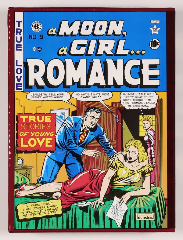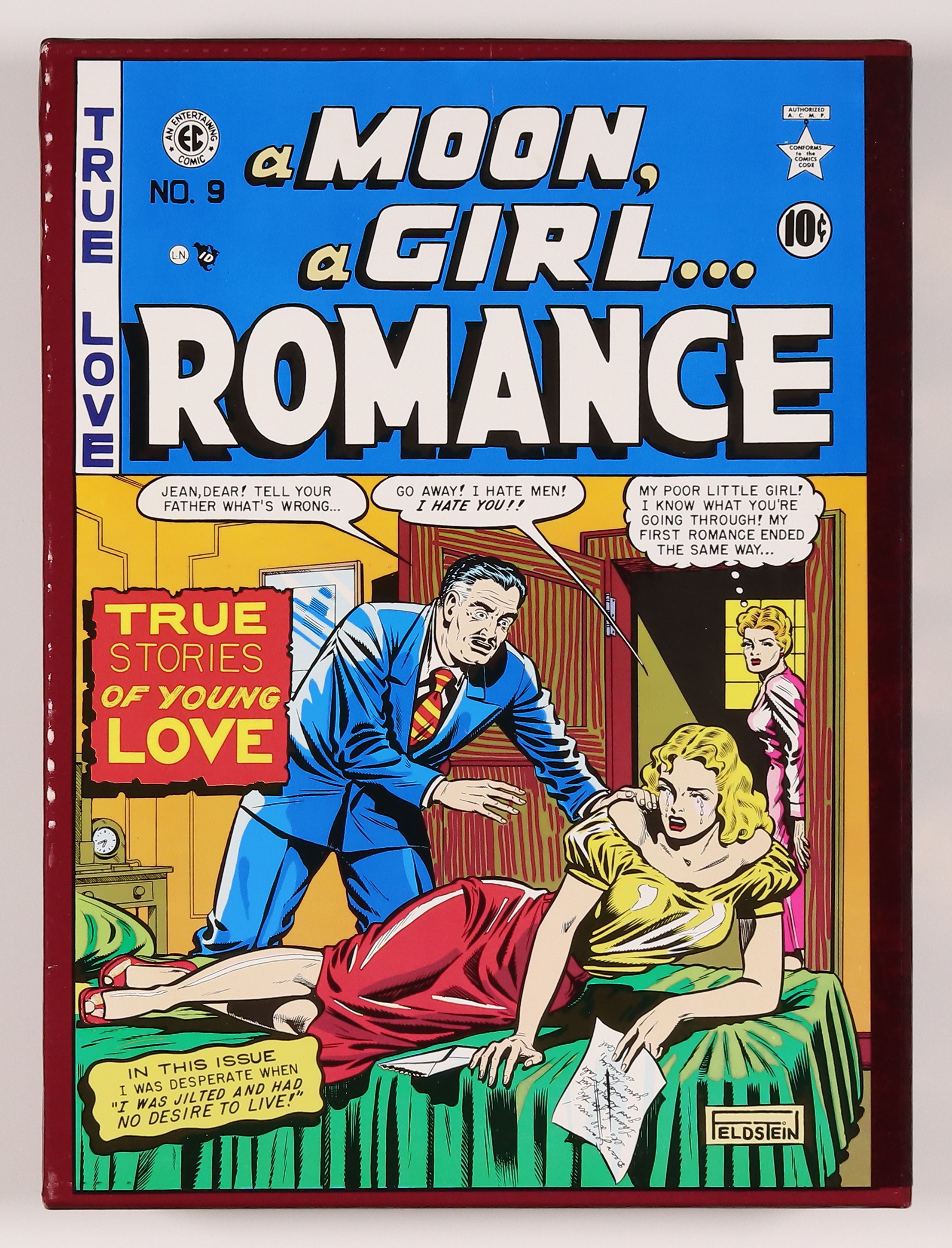 Includes 2 volumes with slipcase. One volume collects Modern Love (1949) #1-8 (138 pages) and the other collects A Moon, A Girl...Romance (1949) #9-12 and Saddle Romances #9-11 (120 Pages). 9 5/8" x 12 7/8". B&W.
