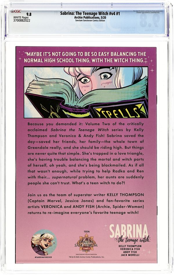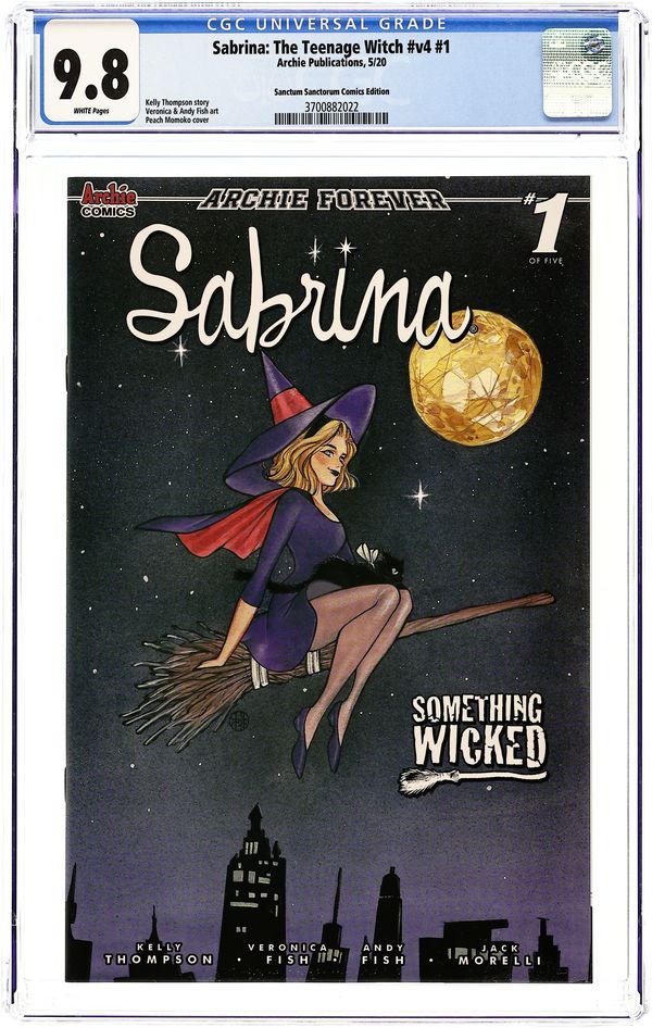 Sanctum Sanctorum Comics Exclusive Variant Cover by Peach Momoko. Written by Kelly Thompson. Art by Veronica Fish. Because you demanded it: Volume Two of the critically acclaimed Sabrina the Teenage Witch series by Kelly Thompson and Veronica & Andy Fish! Sabrina saved the day-saved her friends, her family-the whole town of Greendale really, and she should be riding high. But things are never quite that simple. She's trapped in a love triangle, she's having trouble balancing the mortal and witch parts of herself, oh yeah, and she's being blackmailed. As if all that wasn't enough, while trying to help Radka and Ren with their...supernatural problem, her aunts suddenly starting to look like people she can't trust. What's a teen witch to do?! 32 pages, full color. Rated T