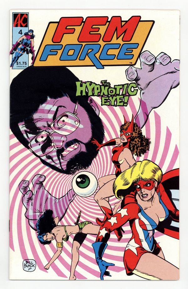 Cover art by Bill Black. The Hypnotic Eye, script by Bill Black, pencils by Mark Propst, inks by Mark Heike; Even as She-cat, Tara and Ms. Victory stop Randall Crowley, his gang and their giant mechanical octopus, the Machiavellian Stella Stargaze sets her sights on the next gem to steal--Tara's mega-rich father, T. C. Fremont!; see the origin of Stella Stargaze, and her secret weapon; see Ms. Vistory lift a king-sized, flaccid fake octopus; see Tara in an evening gown, rolling on the floor in a cat-fight with Stella. Moon's Mind Masquerade, Part 2: Mind Games, script and pencils by Don Seacrease, inks by Mark Heike. 36 pgs. $1.75. Cover price $1.75.