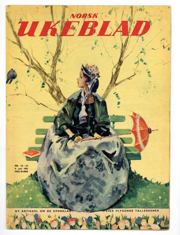 Published Jun 1951 by Hjemmet / Egmont.$12.00Norwegian weekly family magazine featuring articles on food, interior decoration, health, fashion, and beauty. Full color comic strip pages including Flash Gordon and Donald Duck. 10" x 13.75", 24 pages, PC/PB&W. Note: All text in Norwegian.