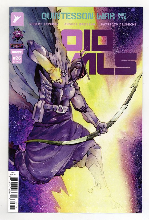 Published by Image.$16.00Limited 1 for 50 Retailer Incentive Variant Cover. (W) Robert Kirkman (A) Andrei Bressan, Patricio Delpeche (CA) Chuma Hill THE QUINTESSON WAR RAGES ON! Sharkticon hordes sweep the Sacred Ring as the Zertonians and Agorrian’s finally reach unity--in fighting a common enemy! Cover price $3.99.