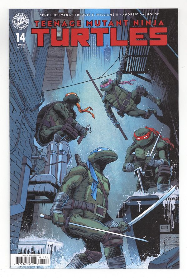 Published Jan 2026 by IDW Publishing.$27.00Limited 1 for 75 Retailer Incentive Variant Cover.(W) Gene Luen Yang (A) Freddie E. Williams II (CA) Declan Shalvey Ujigami strikes again! The mysterious new villain has claimed another victim in their drive to make the city safe at any cost. While the Turtles still struggle to get any upper hand on their new adversary, Donatello has suspicions about their true identity that may mean a whole new set of problems for our half-shell heroes. Trying to get ahead, the Turtles set a trap using Ujigami's likely next victim as bait: the leader of the Foot Clan, Karai! 28 pages, not rated, Full Color Cover price $4.99.