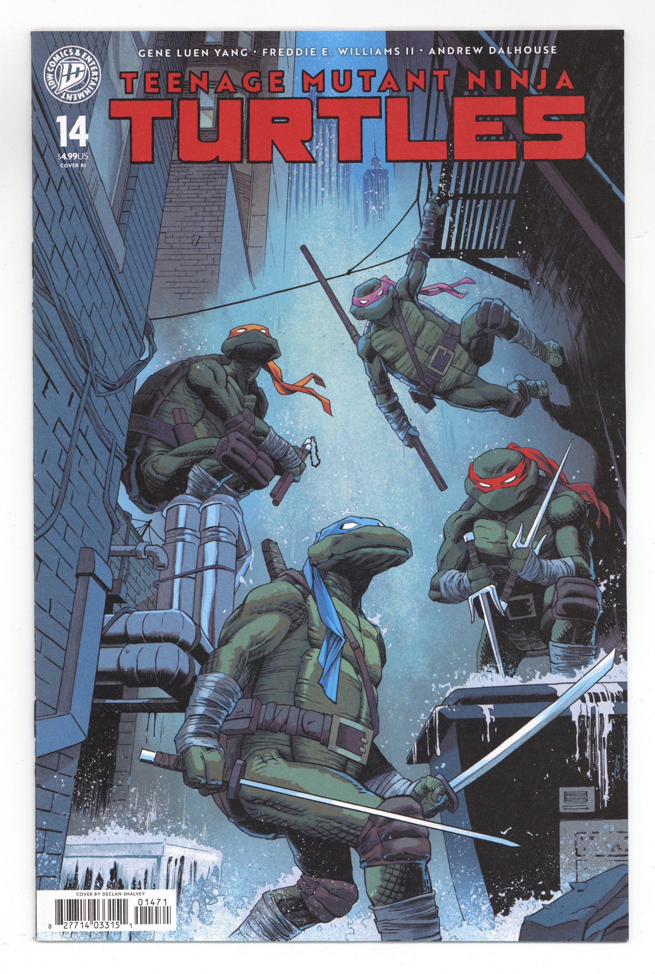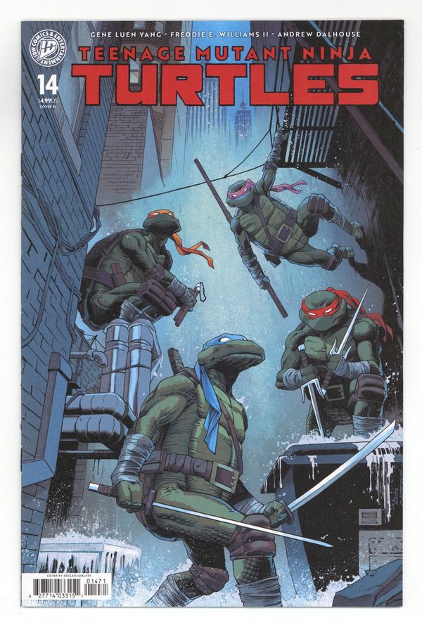 Published Jan 2026 by IDW Publishing.$30.00Limited 1 for 75 Retailer Incentive Variant Cover.(W) Gene Luen Yang (A) Freddie E. Williams II (CA) Declan Shalvey Ujigami strikes again! The mysterious new villain has claimed another victim in their drive to make the city safe at any cost. While the Turtles still struggle to get any upper hand on their new adversary, Donatello has suspicions about their true identity that may mean a whole new set of problems for our half-shell heroes. Trying to get ahead, the Turtles set a trap using Ujigami's likely next victim as bait: the leader of the Foot Clan, Karai! 28 pages, not rated, Full Color Cover price $4.99.