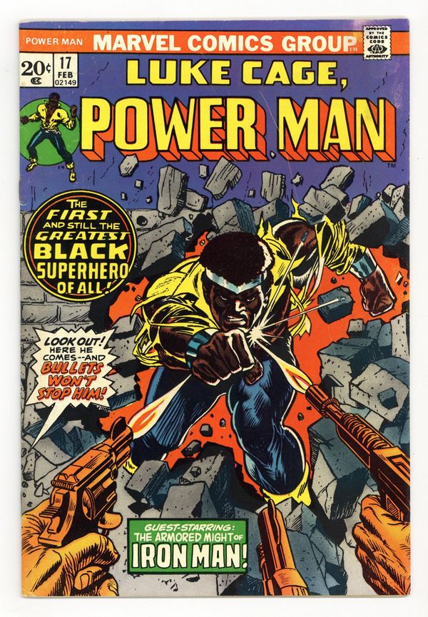 "Rich Man: Iron Man, Power Man: Thief!" Guest-starring Iron Man. Story by Len Wein. Art by George Tuska and Billy Graham. A man in a suit and tie comes as a representative for Tony Stark to hire Luke Cage to test the security at Stark International. This puts Power Man in direct conflict with Stark's bodyguard, the Invincible Iron Man. Plus, what happens when Shell-Head reveals that nobody at Stark International hired Cage? Can these two iron-fisted heroes stop beating on each other long enough to catch the culprit behind it all? NOTE: 1st issue to be titled Power-Man. Cover price $0.20.