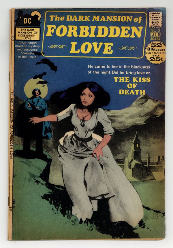 Jeff Jones cover, In "Kiss of Death," Doctor Victor Enright and nurse Anne Mason move into the mysterious Castle Dravko, despite warnings that evil lurks there. A book length, four-part story with chapter titles "It Walks By Night," "The Secret of Baron Dravko," "The Body in the Coffin," and "Mystery of the Locket." Script by Jack Oleck & Art by Don Heck. Issue also has a text feature on "Prophecies That Have Come True." Cover price $0.25.