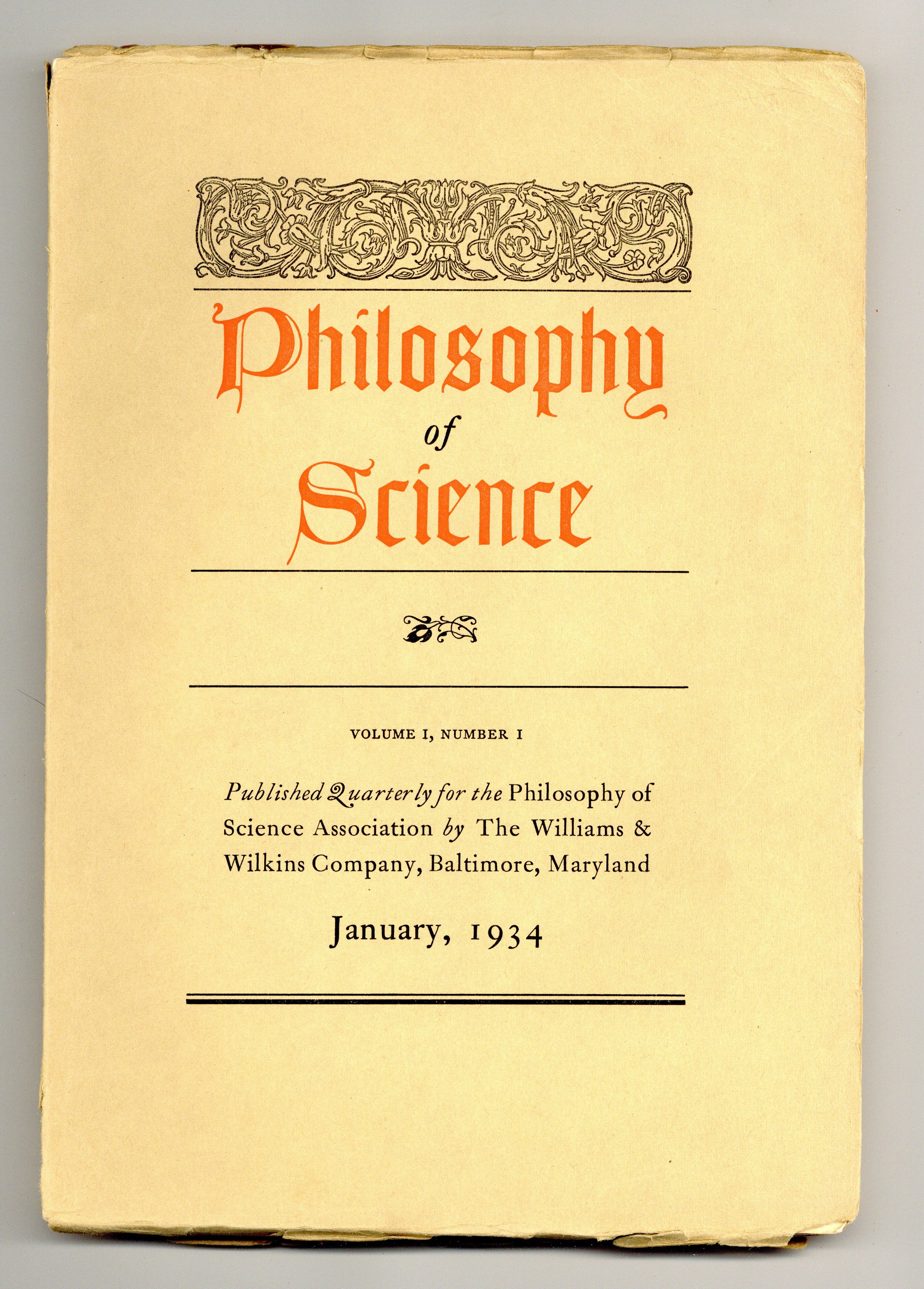 Published Jan 1934 by Williams & Williams.$30.00First Issue. Quarterly academic journal dedicated to the furthering of studies and free discussion from diverse standpoints in the philosophy of science. 7.25" x 10.5", 120 pages, B&W.