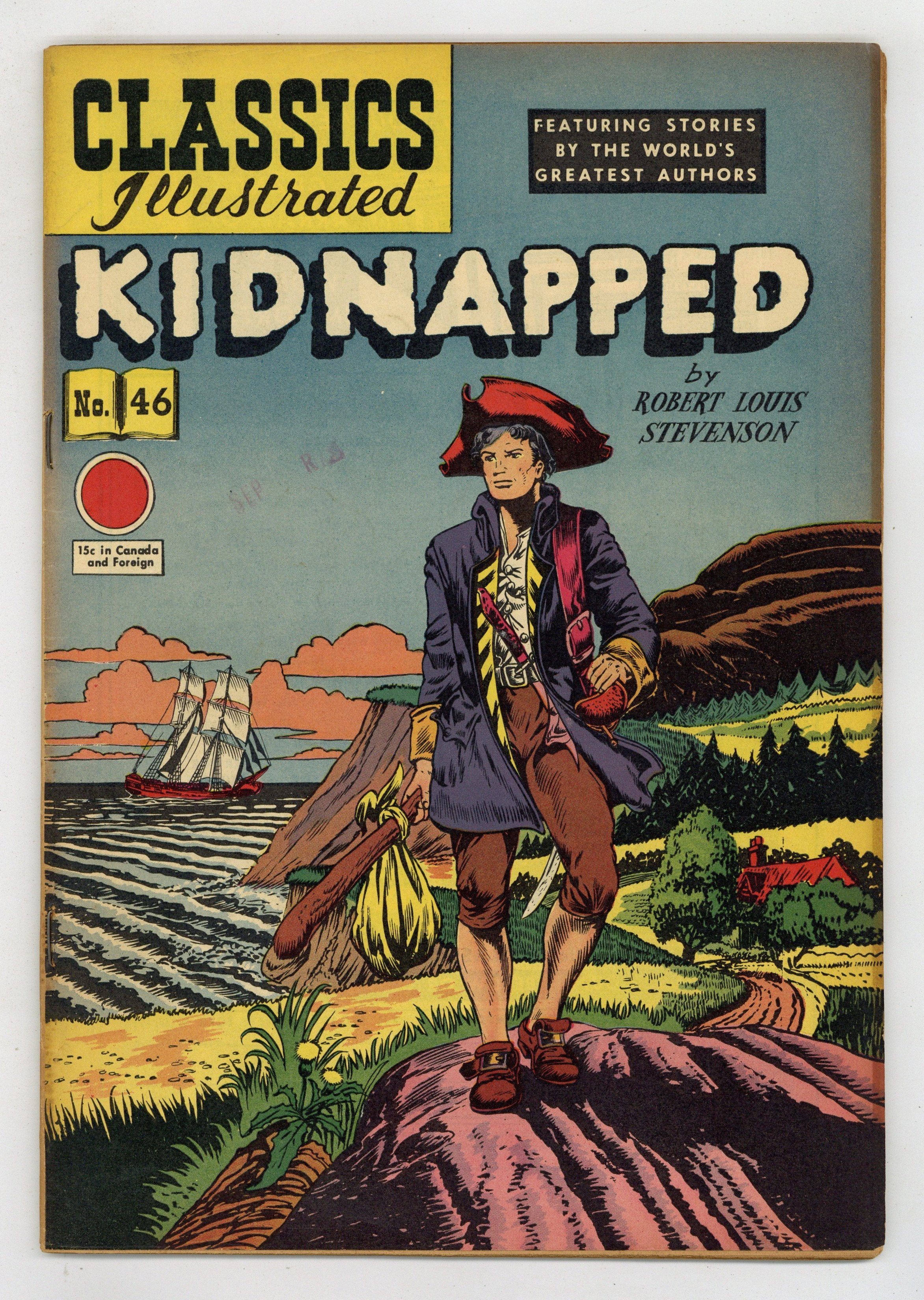 Kidnapped by Robert Louis Stevenson, 2nd printing, Line Drawing Cover, price circle blank. Comic book adaptation of the classic story of a young man kidnapped to work on a ship's crew and his fight to regain his rightful place in the world.(HRN 62).