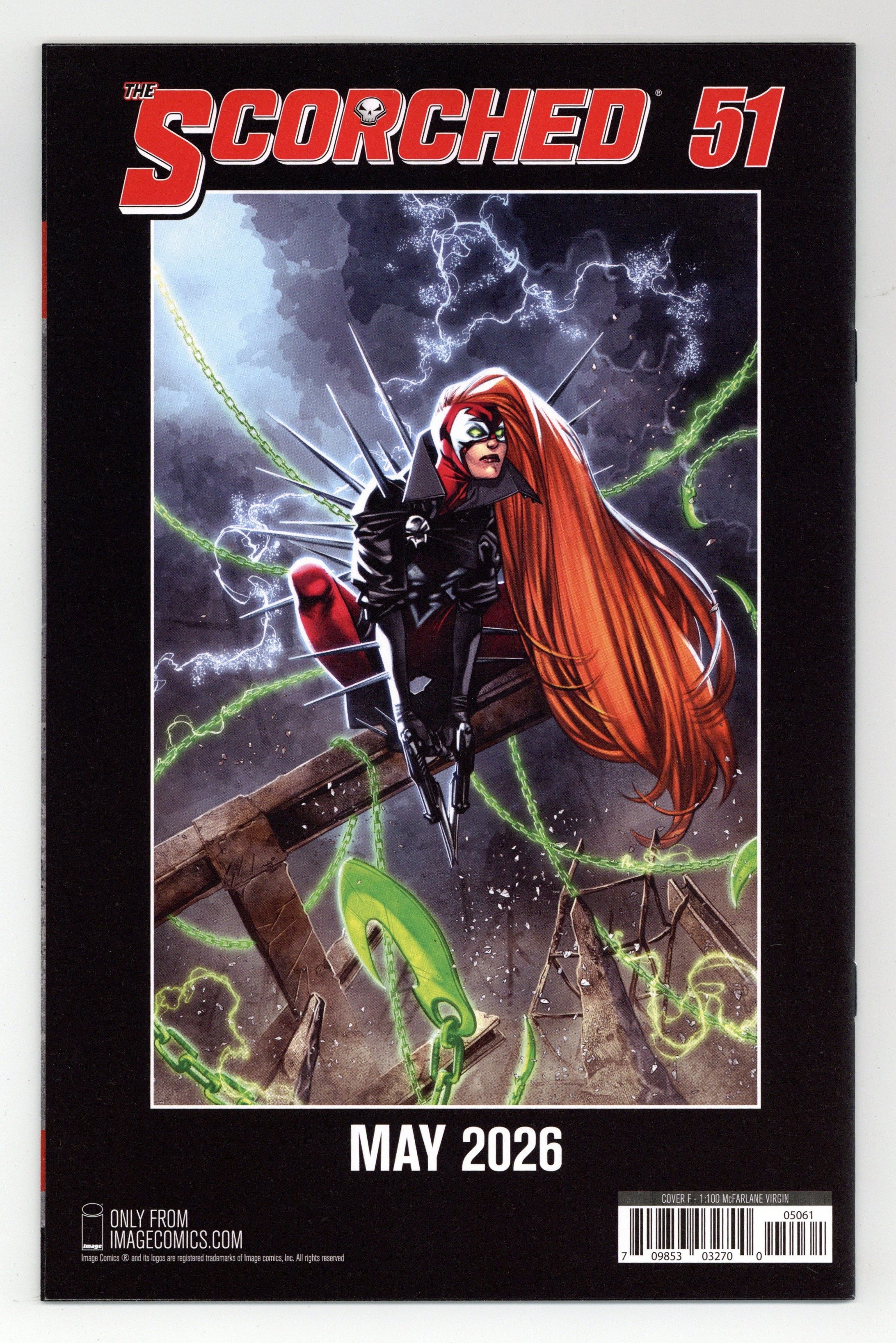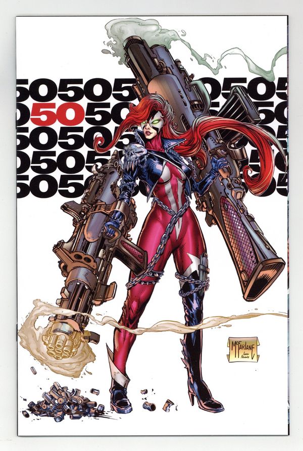 $30.00Limited 1 for 100 Retailer Incentive Variant Cover. (W) Todd McFarlane (A) Stephen Segovia, Carlo Barberi (CA) Todd McFarlane Four years ago, Todd McFarlane launched the first large-scale expansion of the Spawn Universe with King Spawn #1. Now we are here to celebrate the success of the expanded Spawn's Universe with THE SCORCHED #50. Part 3 of an oversized issue with a story that crosses over into all three of the #50's that came out in the past months. (King Spawn, Gunslinger Spawn, The Scorched). The startling conclusion for this epic event is finally here. The battle rages on, and the final reveal will have Spawn fans talking for years to come. Scorched #50 leaves the Spawn Universe forever changed! 32 pages, full color, not rated. Cover price $4.99.