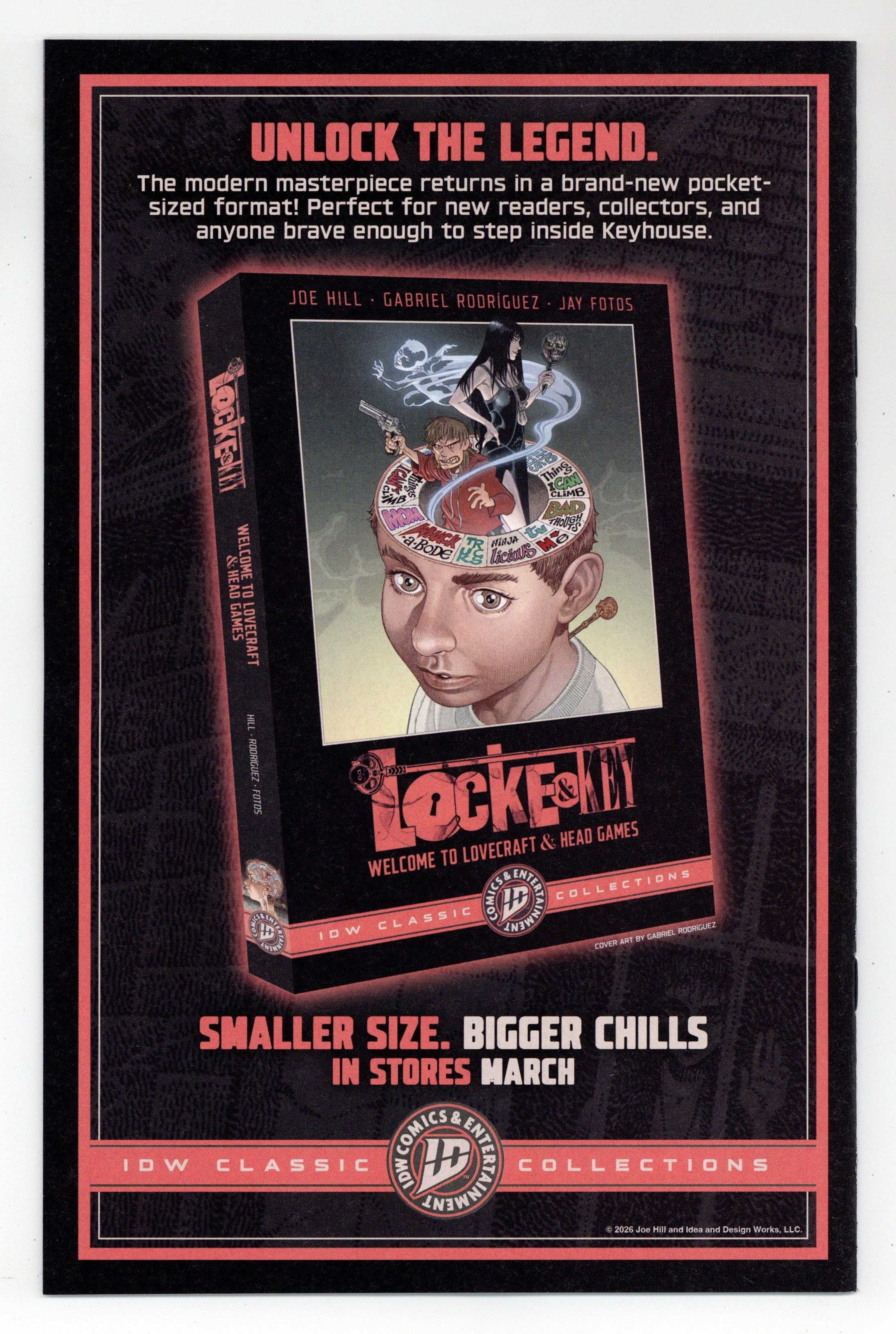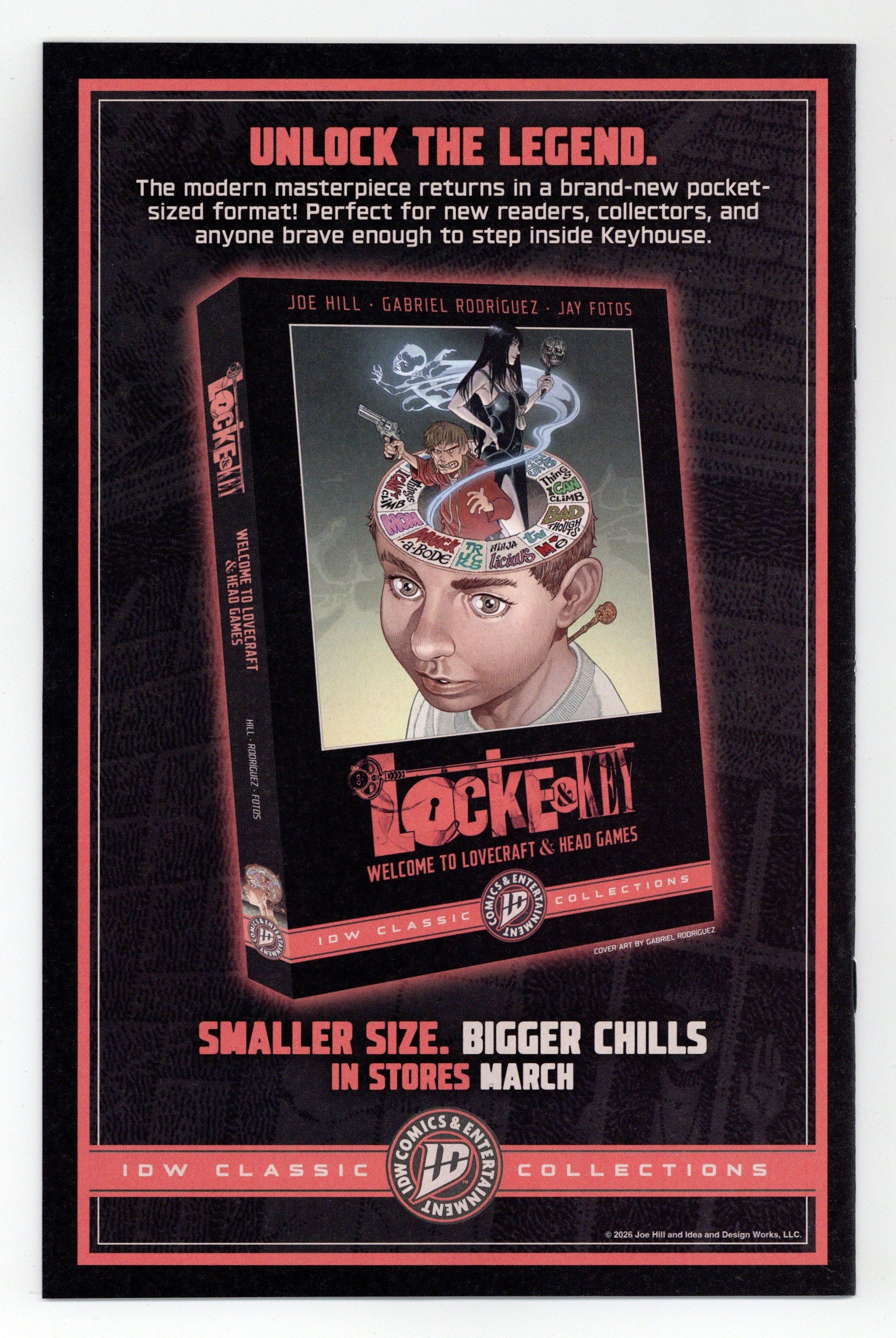 Published by IDW Publishing.$27.00Limited 1 for 75 Retailer Incentive Variant Cover. (W) Gene Luen Yang (A) Freddie E. Williams II (CA) Bernard Chang Father and sons, together again! The Turtles are overjoyed to have Splinter back with them, but there are dark things lurking in the shadows—a mysterious new magic-wielding foe disrupts the family reunion! The Turtles also learn who Ujigami’s next target is, and the race is on to save one of their greatest allies! Cover price $4.99.