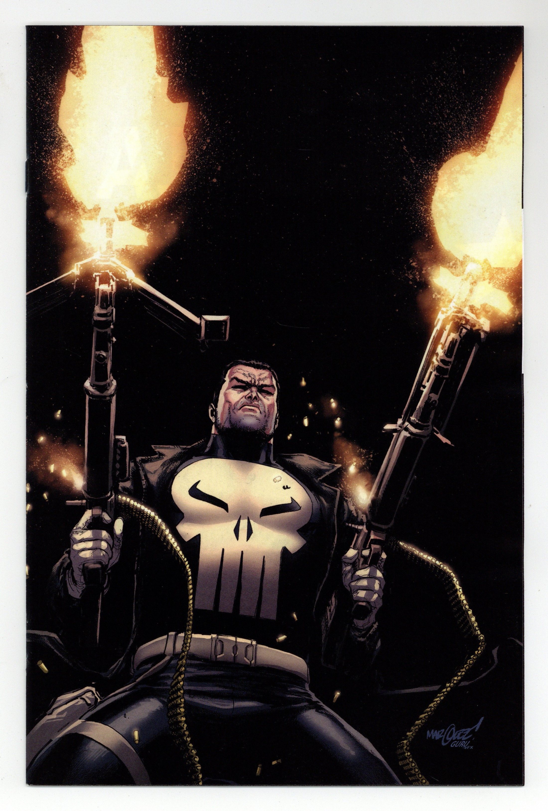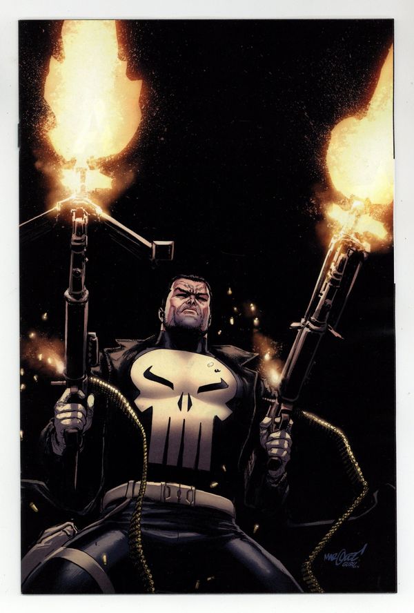 Tags: Punisher$38.50Limited 1 for 100 Retailer Incentive Variant Cover. (W) Benjamin Percy (A) Jose Luis Soares (CA) David Marquez CRIME'S WORST NIGHTMARE IS BACK IN AN ALL-NEW ONGOING SERIES! As unflinching and uncompromising as ever, Frank Castle's memory is damaged and he's hunting for answers and criminals alike! He'll get more than he bargained for of both when the notorious and bloodthirsty JIGSAW returns…with THE PUNISHER dead in his sights! RATED PARENTAL ADVISORY. 32 pages, full color Cover price $5.99.