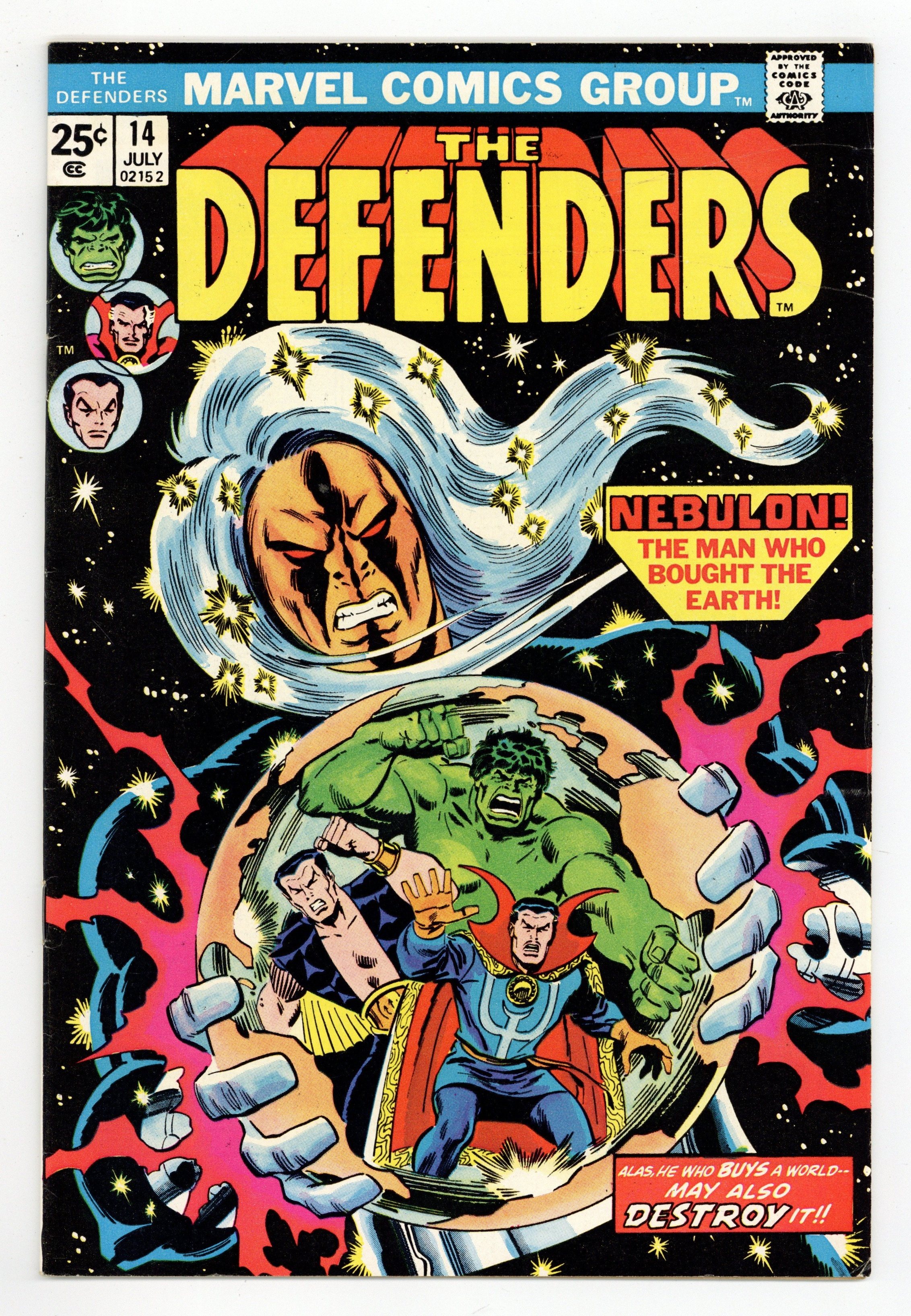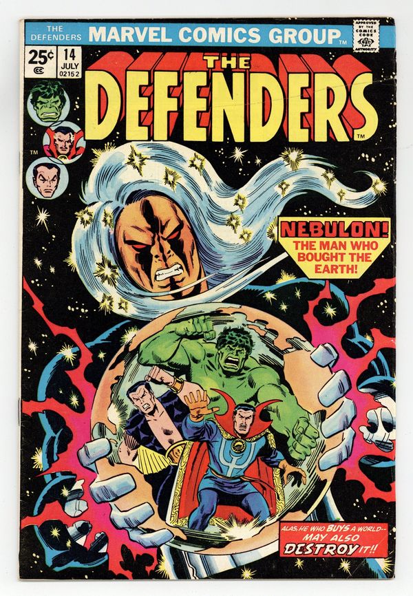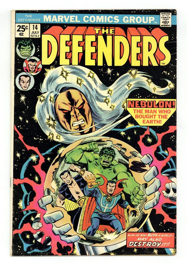 Cover art by Sal Buscema. And Who Shall Inherit the Earth? Script by Len Wein, pencils by Sal Buscema (layouts) and Dan Green (finished art), inks by Dan Green; The Defenders stop the Squadron Sinister and Nebulon from destroying the Earth; Nighthawk becomes a Defender. 36 pgs. Cover price $0.25.