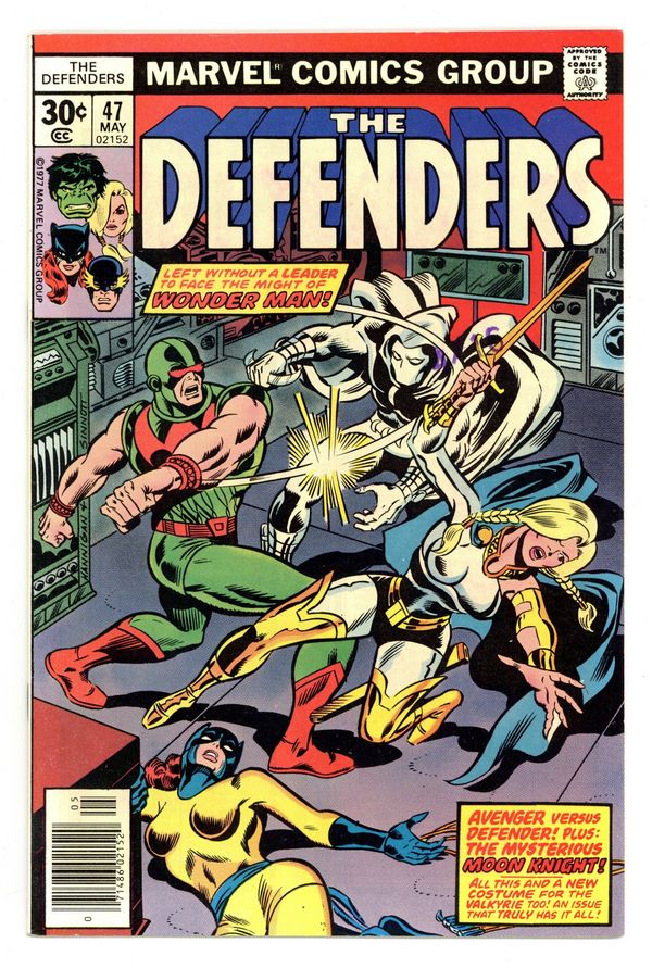 Cover pencils by Ed Hannigan, inks by Joe Sinnott. Night Moves!, script by David Anthony Kraft (plot), Roger Slifer (plot), and John Warner (script), pencils by Keith Giffen (breakdowns) and Klaus Janson (finished art), inks by Klaus Janson; Nighthawk tries to relax at the new headquarters; Hellcat accidentally starts a fight between Wonder Man and the Defenders when she returns to Avengers Mansion with Valkyrie; Moon Knight rescues Jack Norriss from S.H.I.E.L.D. Captain America stars in a one-page Hostess ad, The Sore Sir's Apprentices. 36 pgs. Cover price $0.30.