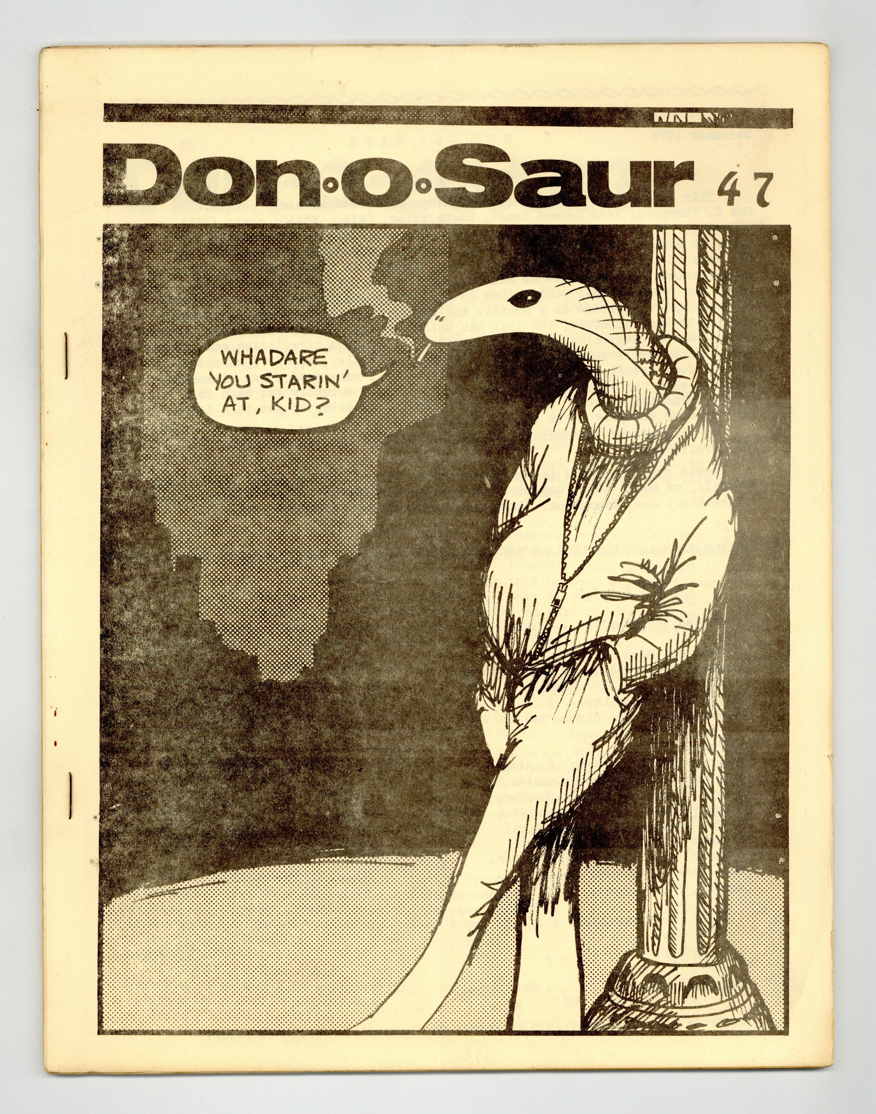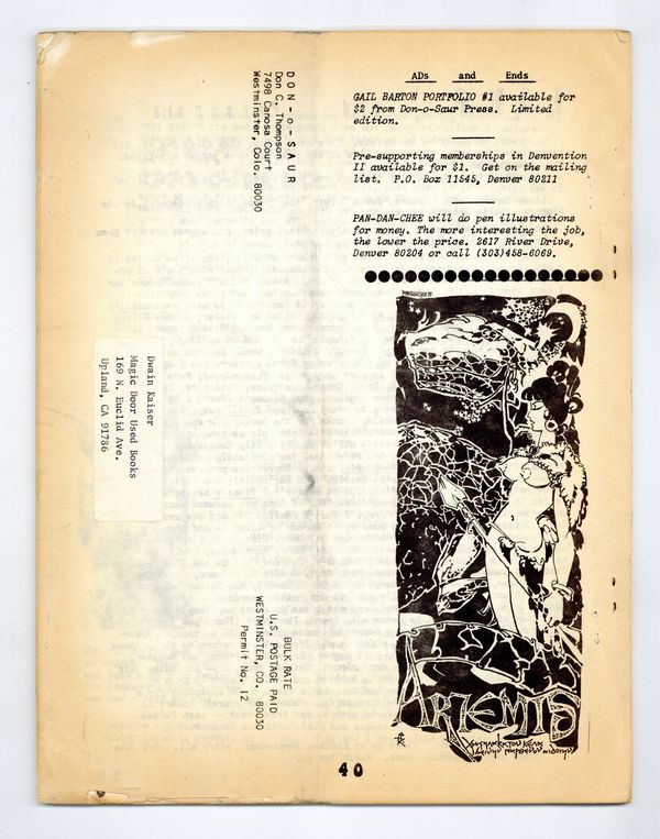 A FAPAzine published by Don C. Thompson which was nominated for the 1976 Best Fanzine Hugo and the 1978 Best Fanzine Hugo. 8.5" x 11", 40 pages, B&W. Cover price $0.35.