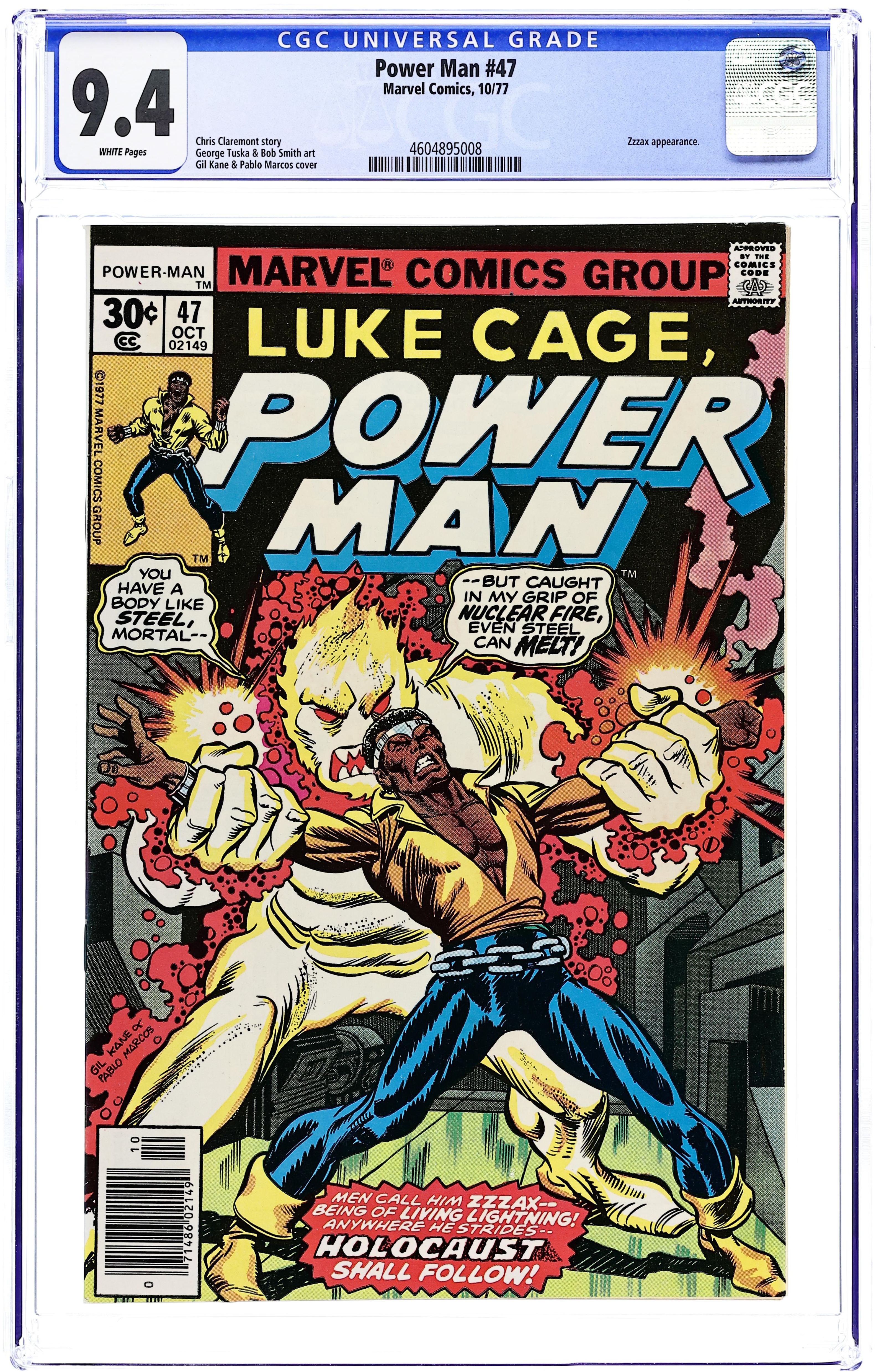 "Hot Time in the Old Town Tonight!" Part 1 of 3. Story by Chris Claremont. Art by George Tuska and Bob Smith. Cover by Gil Kane. Luke Cage comes face-to-face with the electrical menace of Zzzax. Can even Power Man stand against a foe who has fought the Incredible Hulk? Cover price $0.30.