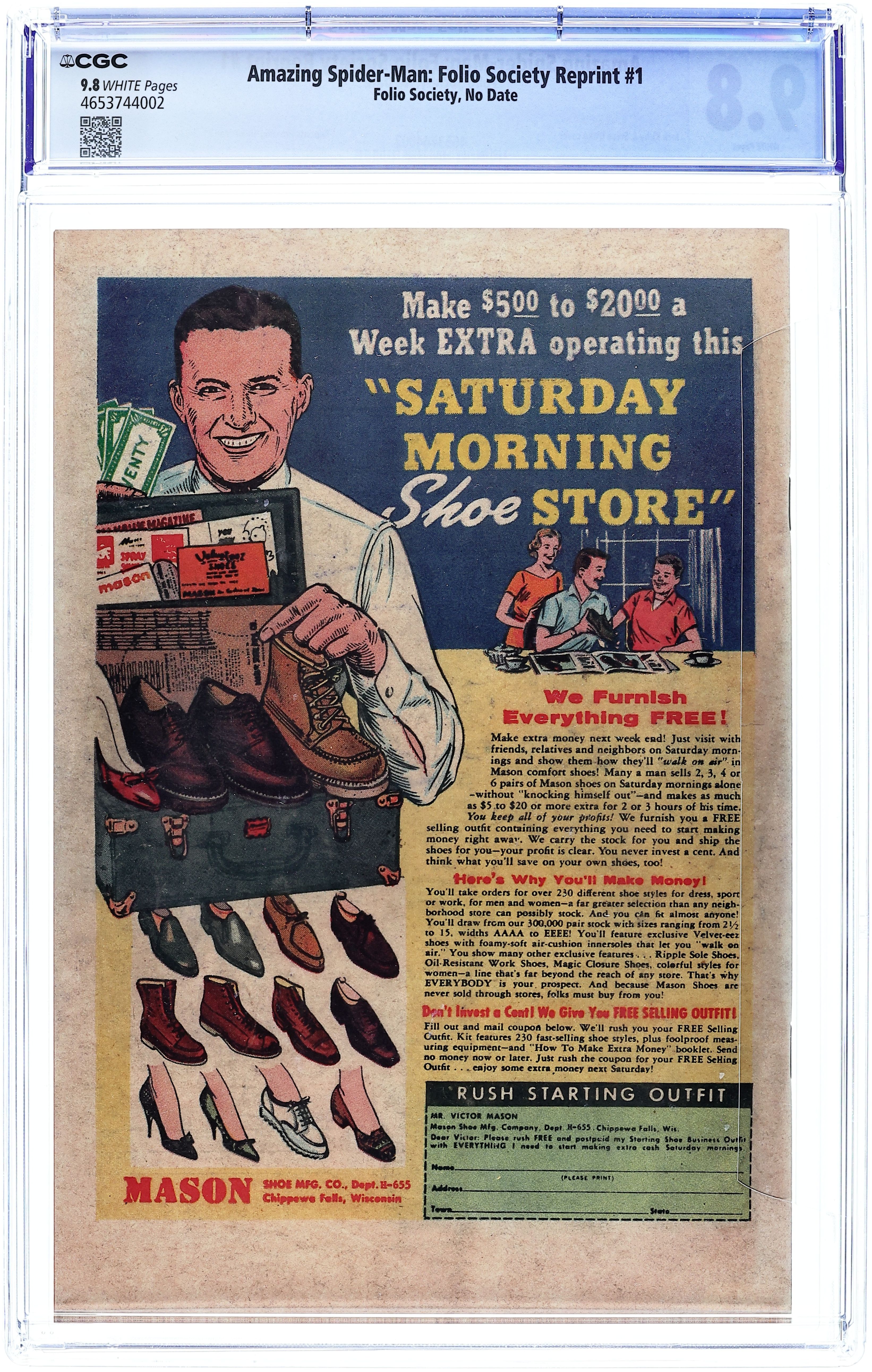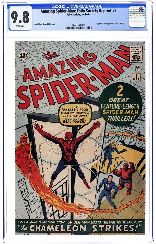 Replica/Facsimile Edition Reprint. Originally included in the Folio Society Spider-Man Hardcover volume. Reprints Amazing Spider-Man (1963 1st Series) #1. Cover by Jack Kirby and Steve Ditko. 36 pages. Cover price $0.12.