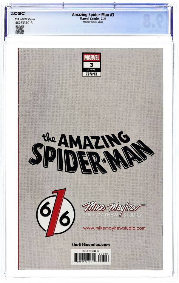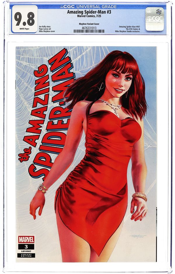 The 616 Comics and Mike Mayhew Studio Exclusive Variant Cover by Mike Mayhew. Written by Joe Kelly. Art by Pepe Larraz. PUMPKIN BOMB PROBLEMS! Past and present collide sending Spider-Man spinning OUT OF CONTROL - just when an old foe obsessed with him gets the sword-stabbing jump on Peter and his main squeeze, Shay Marken! Can the last remaining ally still in Spidey's corner, the GREEN GOBLIN, Norman Osborn, cure Peter before his entire life implodes?! 32 pages, full color. Rated T Cover price $4.99.
