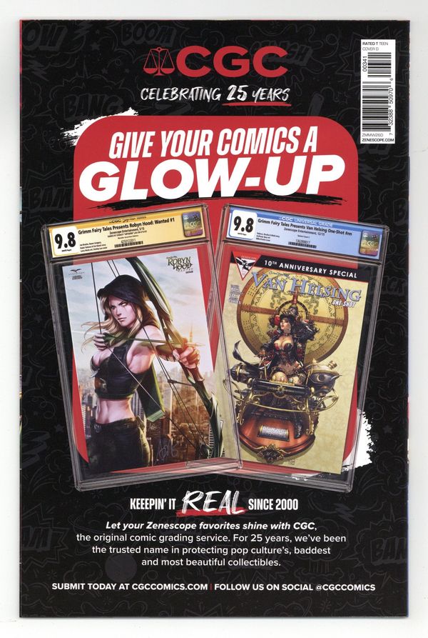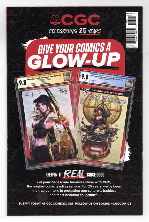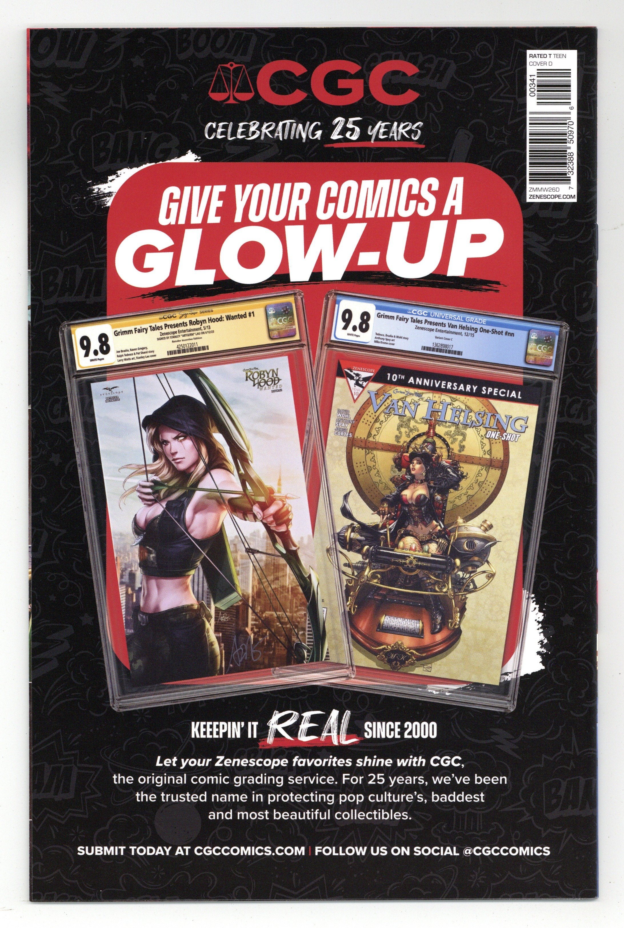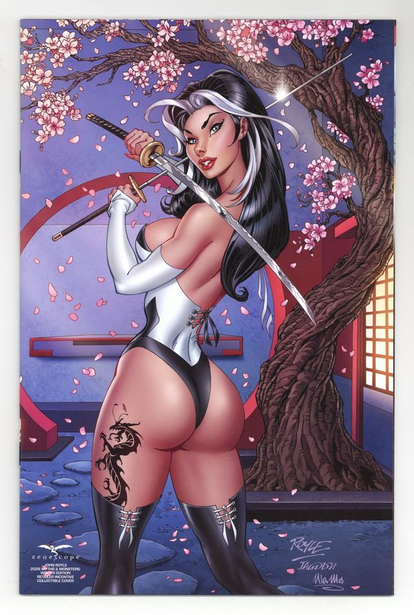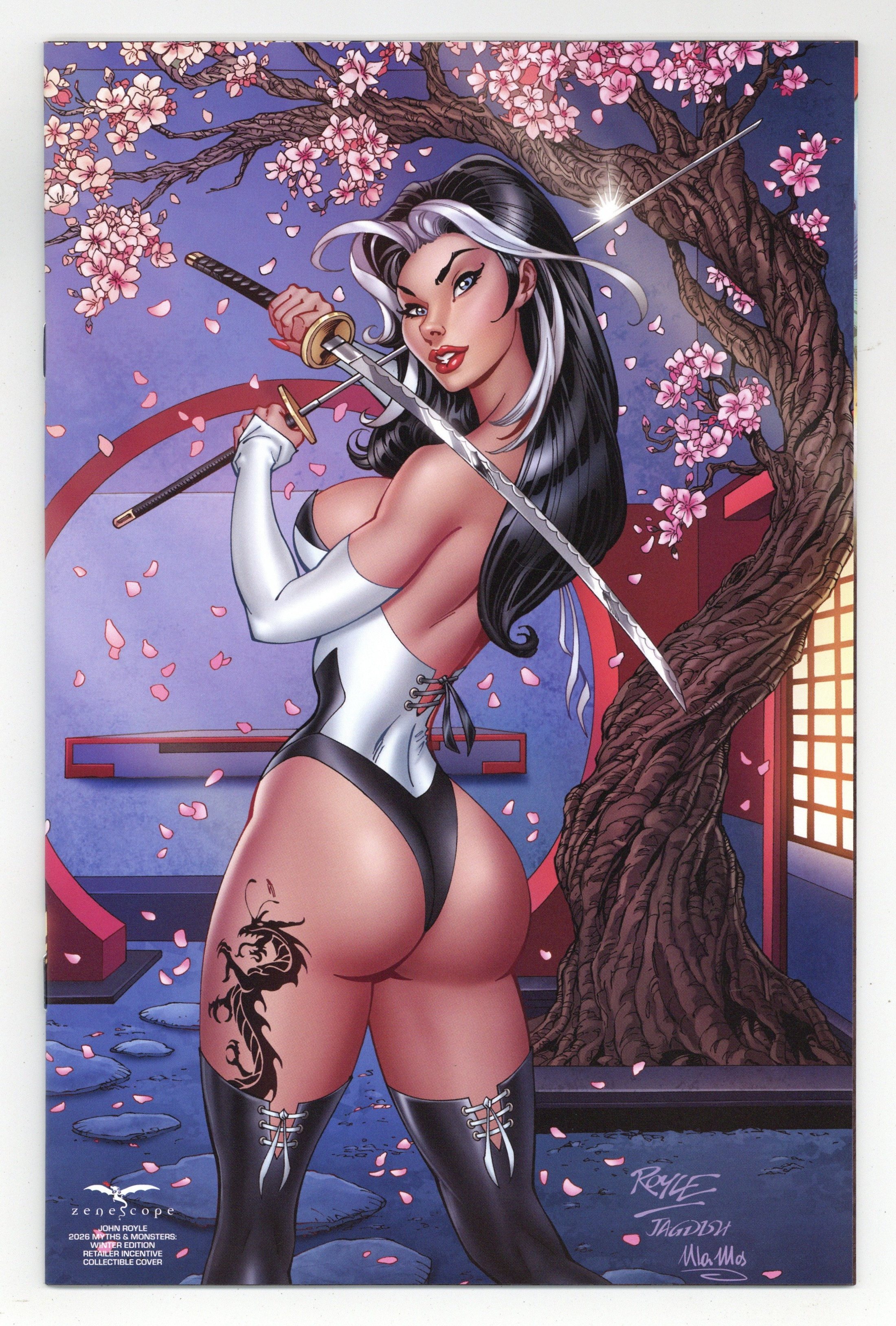 Published Mar 2026 by Zenescope Entertainment.$40.00Limited 1 for 20 retailer incentive variant. Written by Joe Brusha. Cover by John Royle Don't miss this captivating and suspenseful issue collecting three untold tales from across the Zenescope Universe! With three never-before-released stories featuring the demon hunting Masumi, as well as the haunting origins of Jynx & Stitches and the deadly Sandman. 48 pages, T, full color Cover price $10.00.