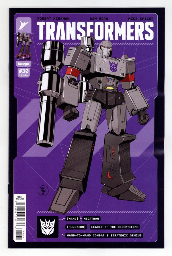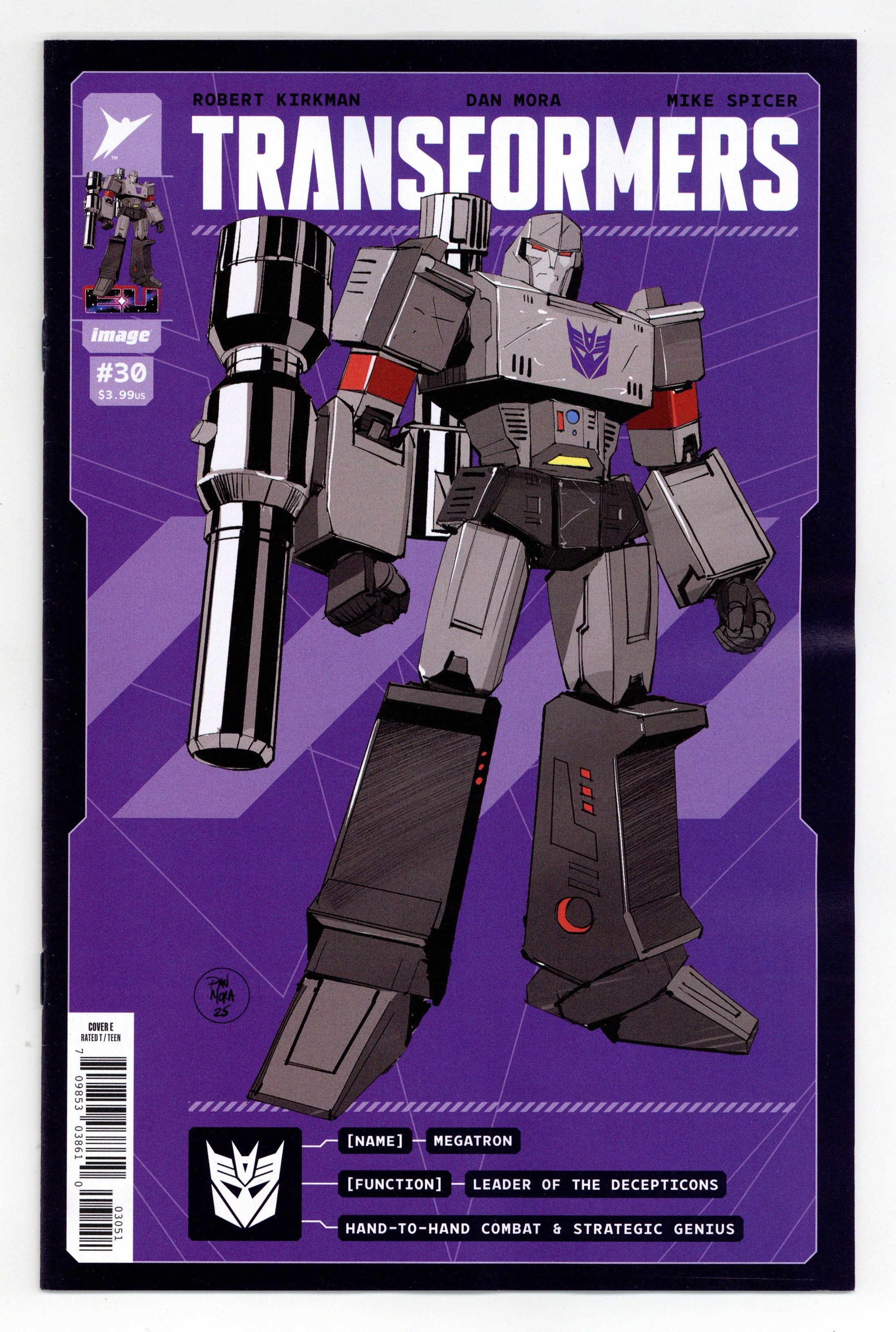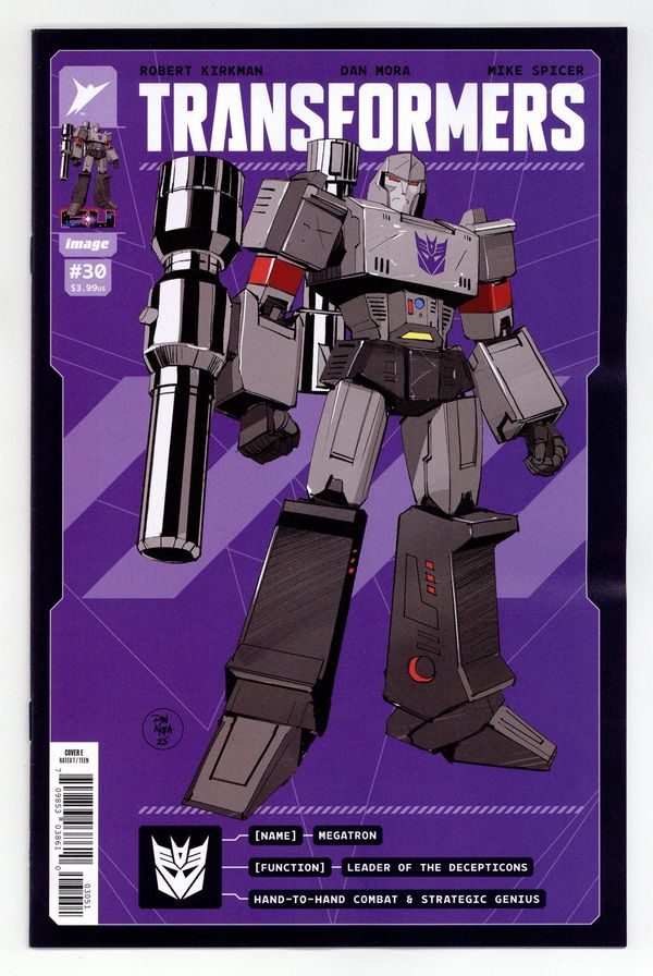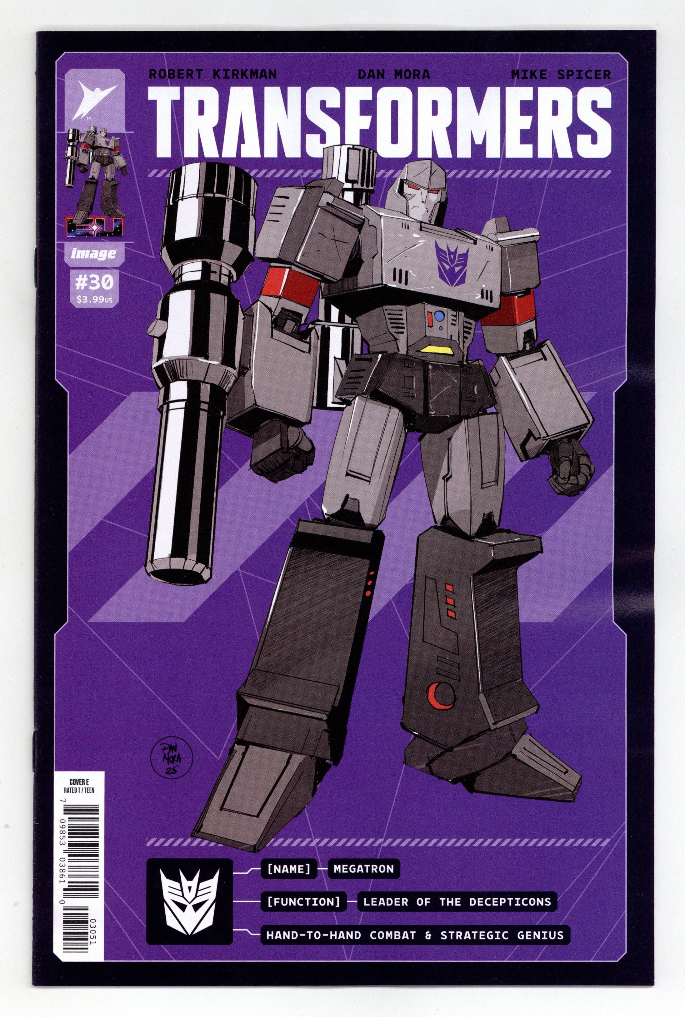 Tags: TransformersPublished by Image.$16.00Limited 1 for 50 Retailer Incentive Variant Cover. (W) Robert Kirkman (A) Dan Mora, Mike Spicer (CA) Dan Mora, Andrez Juarez END OF STORY ARC WHO WILL LEAD THE AUTOBOTS? Its Optimus Prime vs. Elita-1—and the future of the Autobots hangs in the balance! One shall stand and one... ah, you know the rest. Cover price $3.99.