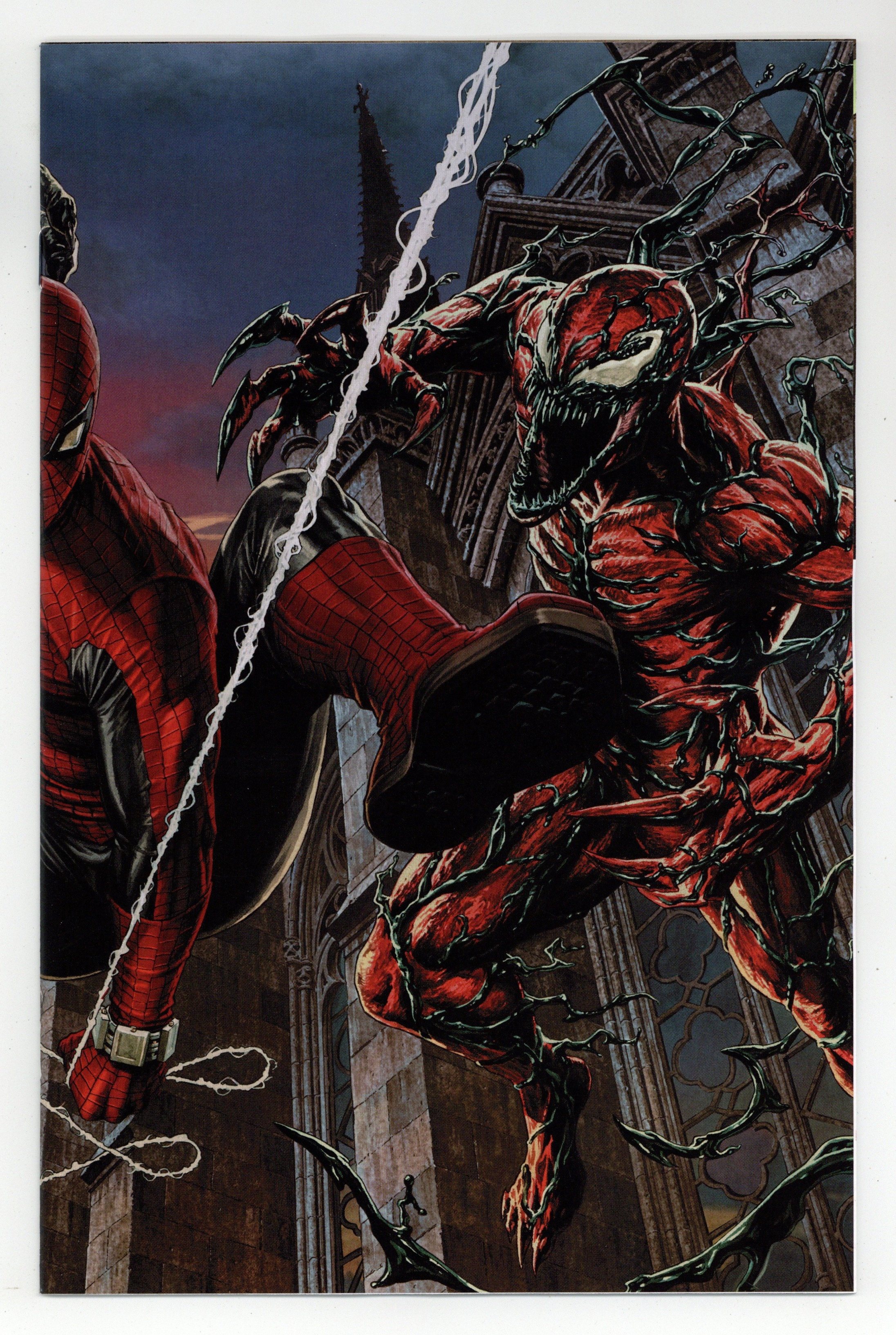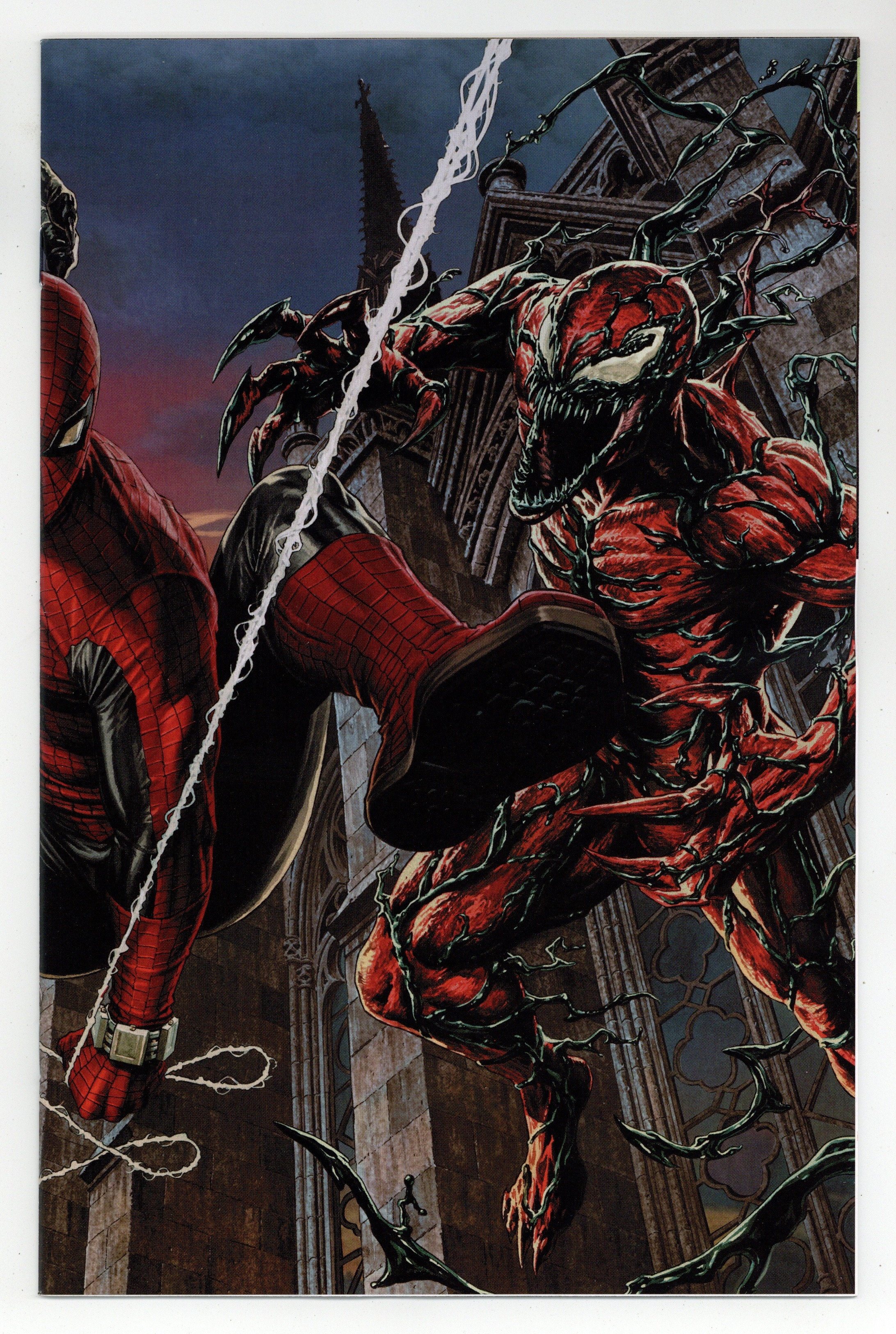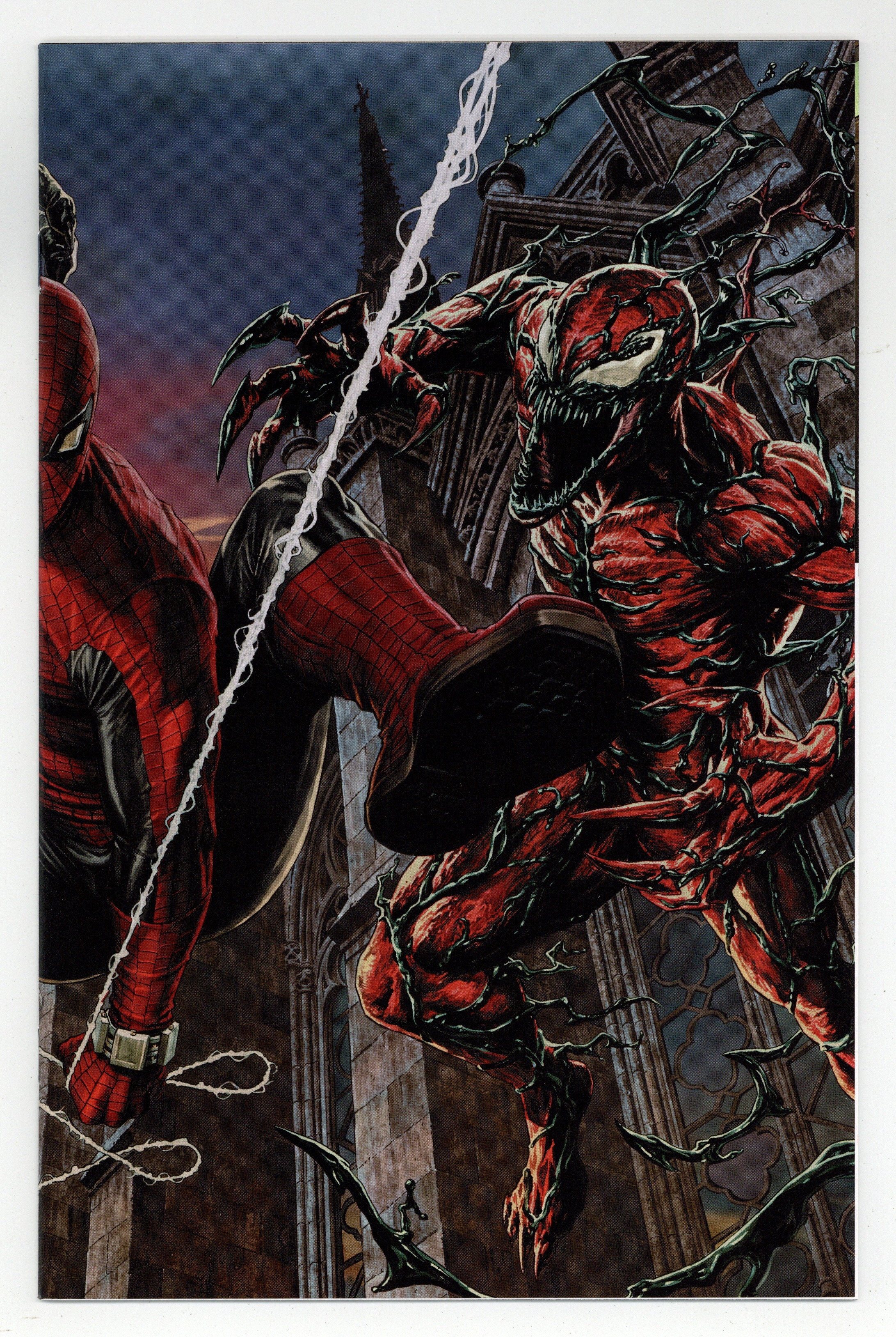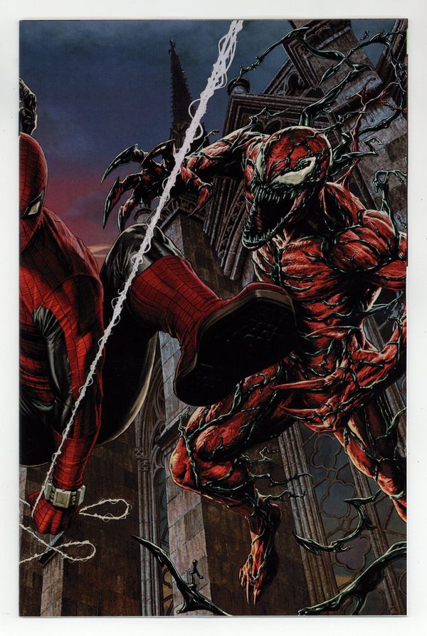 Tags: Spider-Man$68.00Limited 1 for 100 Retailer Incentive Variant Cover. (W) Joe Kelly (A) Jesus Saiz (CA) Lee Bermejo CARNAGE MEETS ITS MATCH!? DEATH SPIRAL PART FOUR! Carnage faces off against Torment while the serial killer's latest murder leaves the Spidey-Symbiote Alliance shaken. 32 pages, full color, rated T. Cover price $4.99.