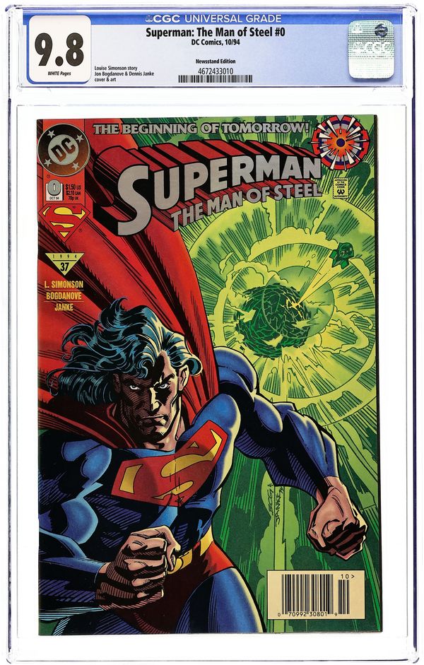 Newsstand Edition. Zero Hour. Someone's cutting Clark Kent's face out of childhood photos...and trying to kill him, too, in "Peer Pressure Part 1 - A Whole New World." Continues in Superman (1987) #0. Written by Louise Simonson. Art & cover by Jon Bogdanove & Dennis Janke. Cover price $1.50.