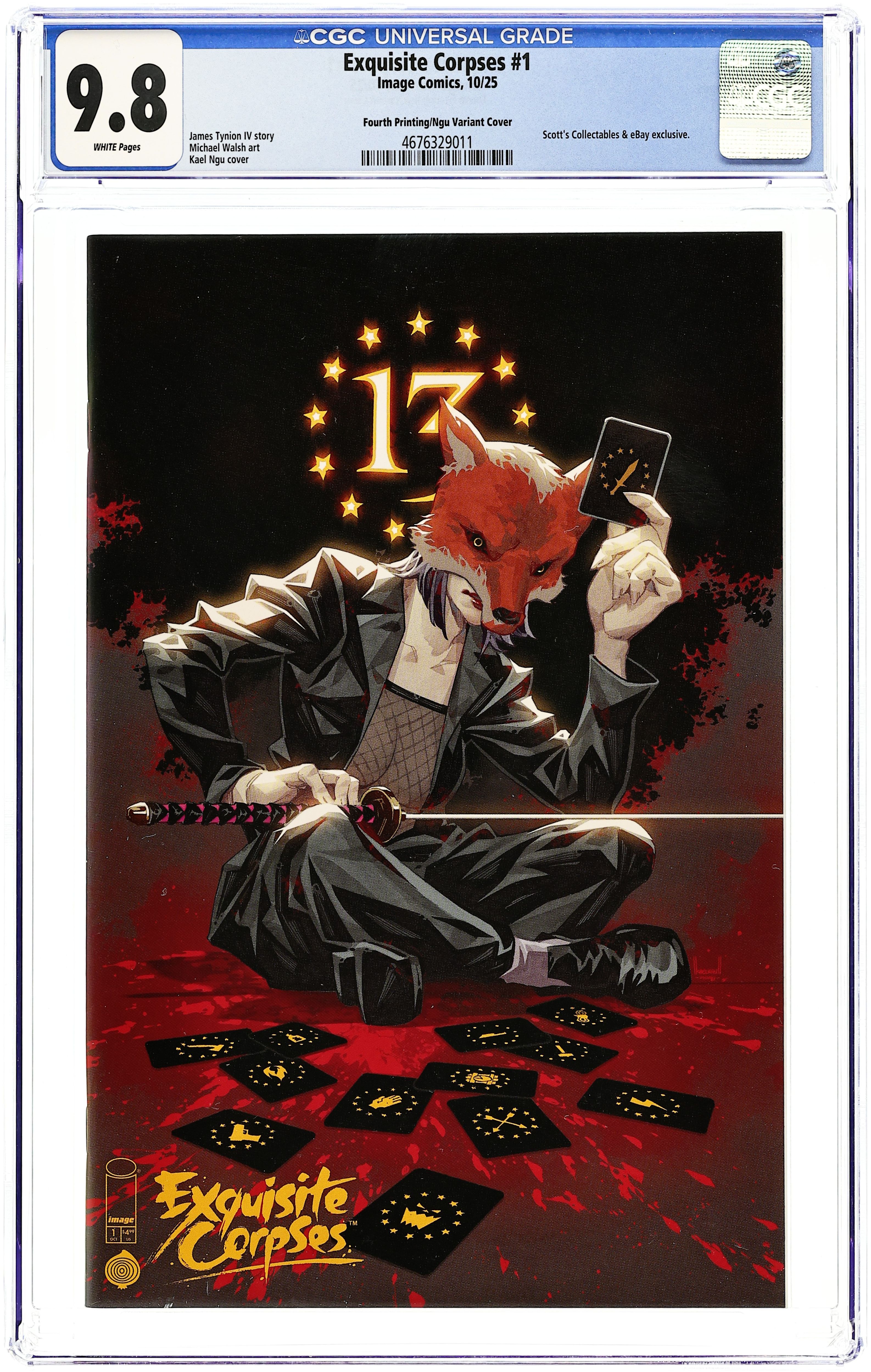 4th Printing. Scott's Collectables and eBay Exclusive Variant Cover by Kael Ngu. Written by James Tynion IV. Art by Michael Walsh, Jordie Bellaire. SERIES PREMIERE Every five years on Halloween, the wealthiest families in America play a game. Twelve of the deadliest people in the world are dropped into a small town with just one goal: last killer standing wins. For the citizens of Oak Valley, Maine—this year's unlucky arena—the goal is much simpler. They must survive the night. Experience a comics event like no other, from the minds of JAMES TYNION IV & MICHAEL WALSH, as they lead a group of the most exciting voices in the industry. Over thirteen blood-soaked chapters, these creators will collaborate and compete to determine who wins and who dies—and the games begin in this triple-sized debut! 64 pages, full color. Rated M Cover price $4.99.