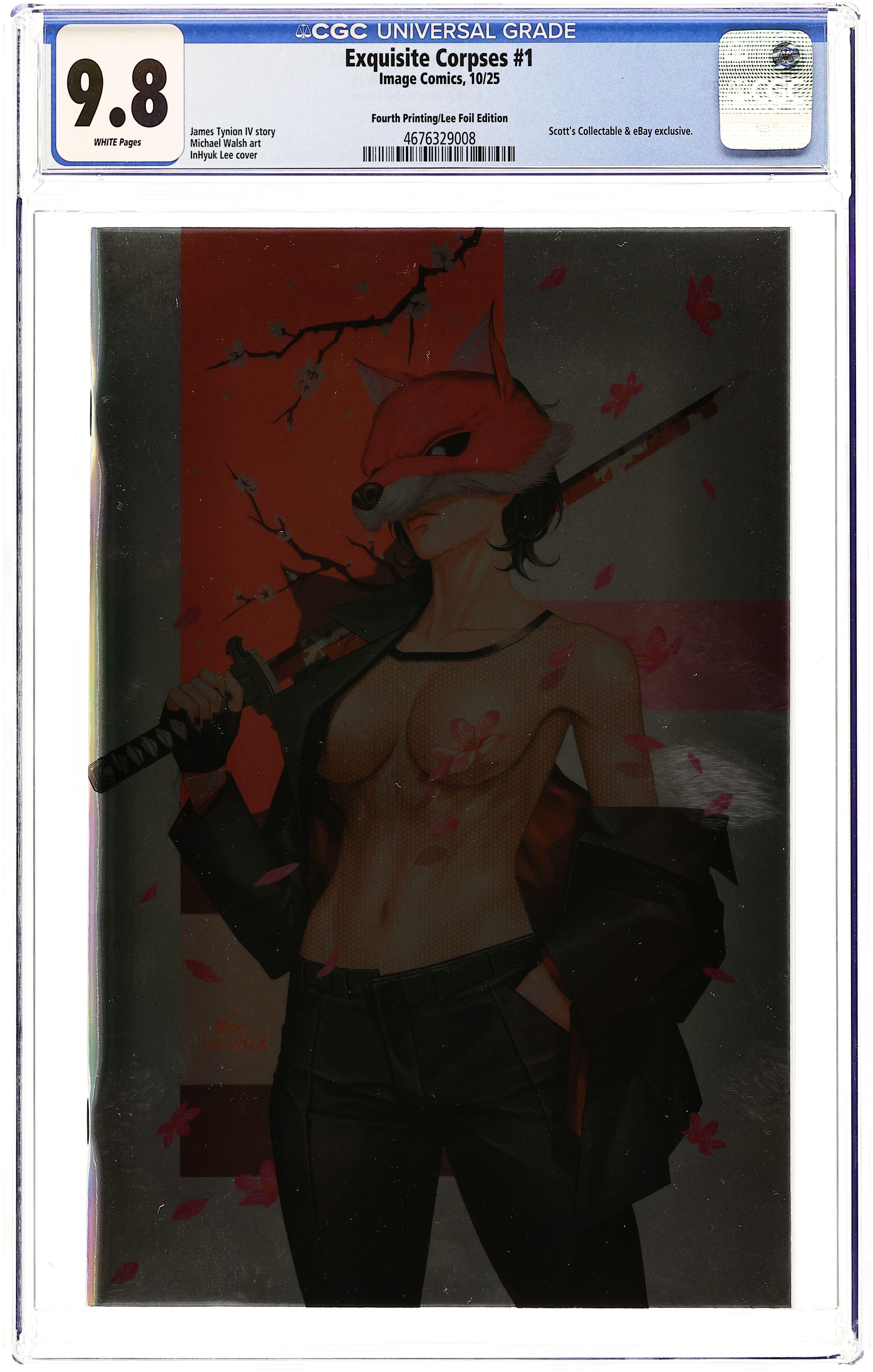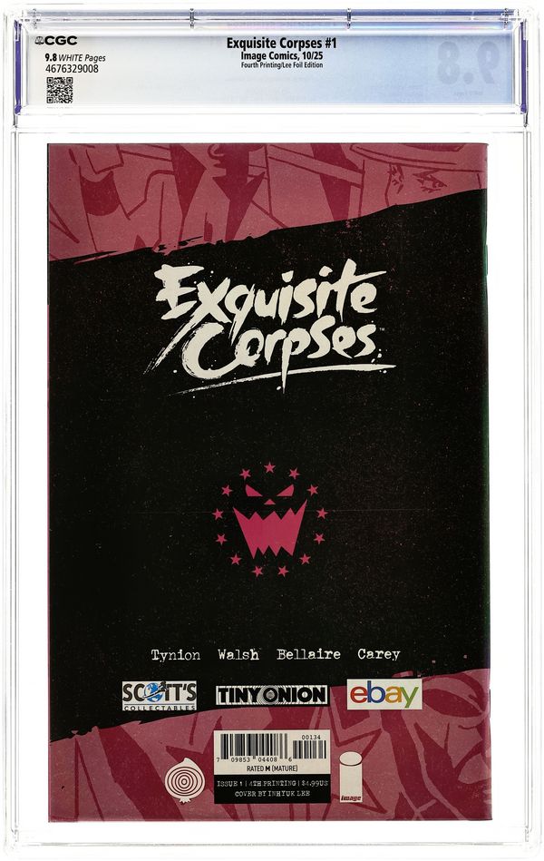4th Printing. Scott's Collectables and eBay Exclusive Silver Foil Edition Virgin Cover by InHyuk Lee. Written by James Tynion IV. Art by Michael Walsh, Jordie Bellaire. SERIES PREMIERE Every five years on Halloween, the wealthiest families in America play a game. Twelve of the deadliest people in the world are dropped into a small town with just one goal: last killer standing wins. For the citizens of Oak Valley, Maine—this year's unlucky arena—the goal is much simpler. They must survive the night. Experience a comics event like no other, from the minds of JAMES TYNION IV & MICHAEL WALSH, as they lead a group of the most exciting voices in the industry. Over thirteen blood-soaked chapters, these creators will collaborate and compete to determine who wins and who dies—and the games begin in this triple-sized debut! 64 pages, full color. Rated M Cover price $4.99.