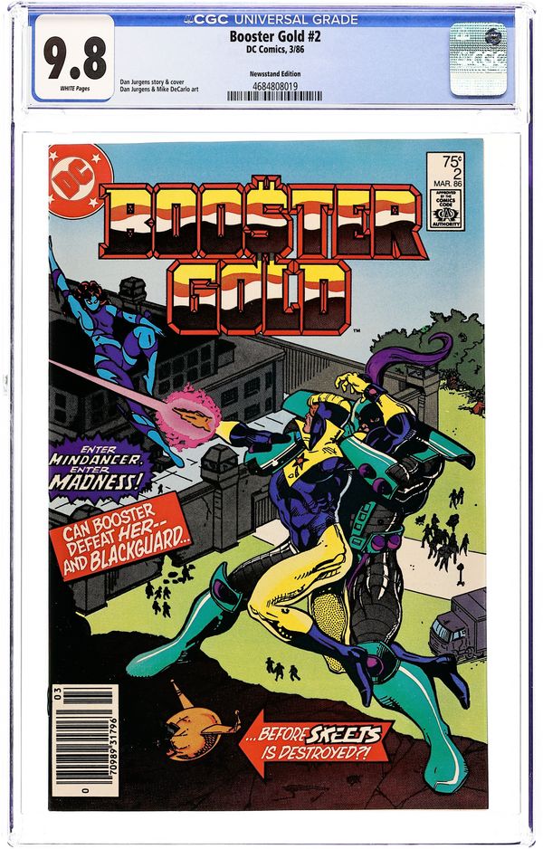 Newsstand Edition. Booster faces Blackguard and his partner in crime, Mindancer (not to mention getting lambasted by the media), in "Cold Redemption". Script and pencils by Dan Jurgens, inks by Mike DeCarlo. Jurgens cover. Cover price $0.75.
