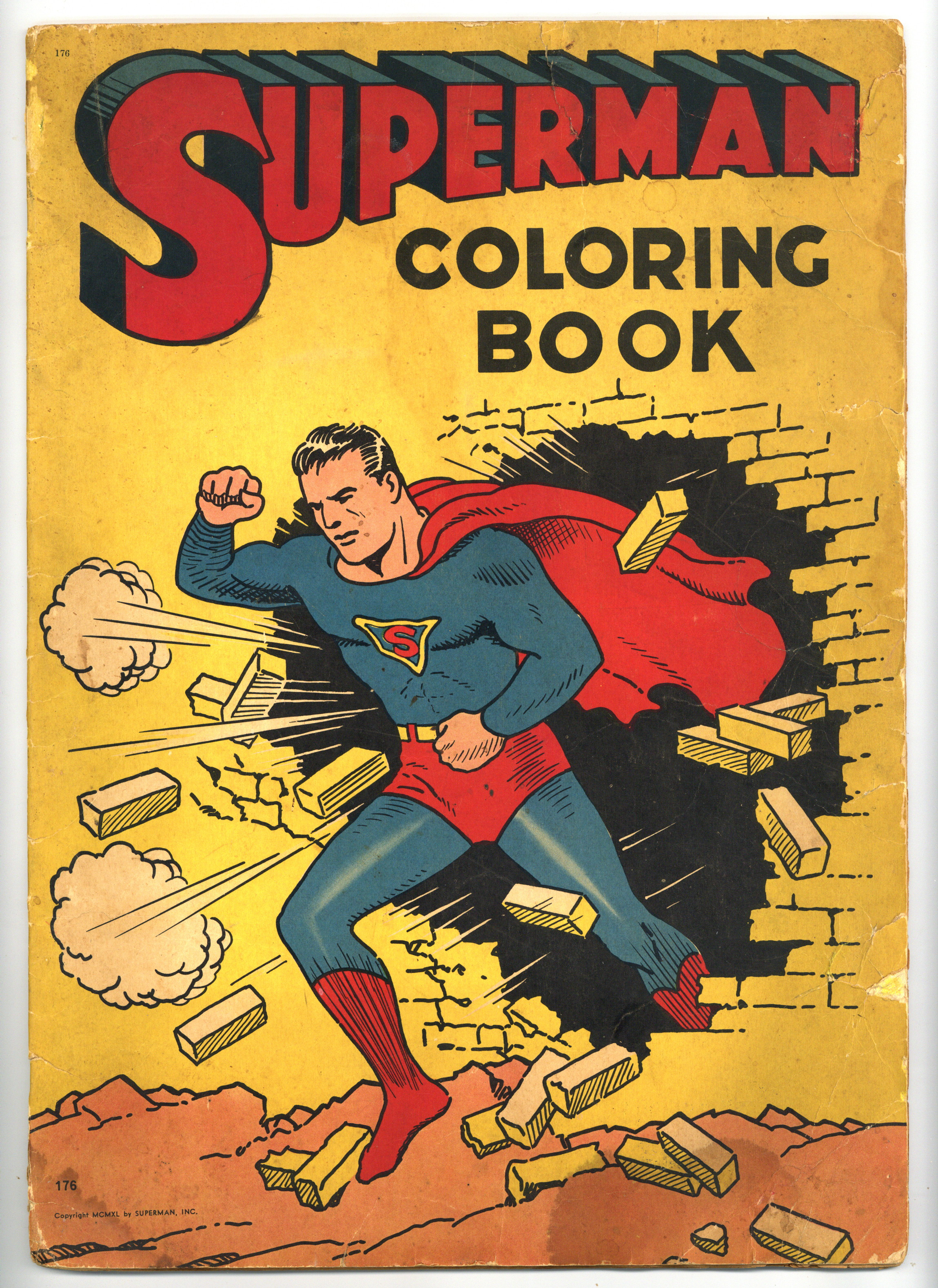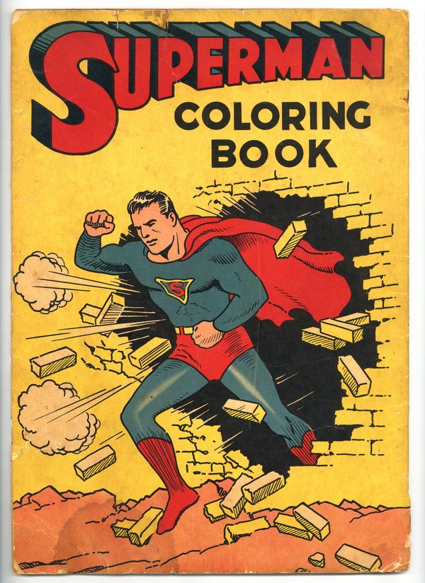 1940's Saalfield Superman Coloring book. Featuring page after page of the Man of Steel's exciting exploits. 11-in. x 15 1/2-in., 50 pages, B&W