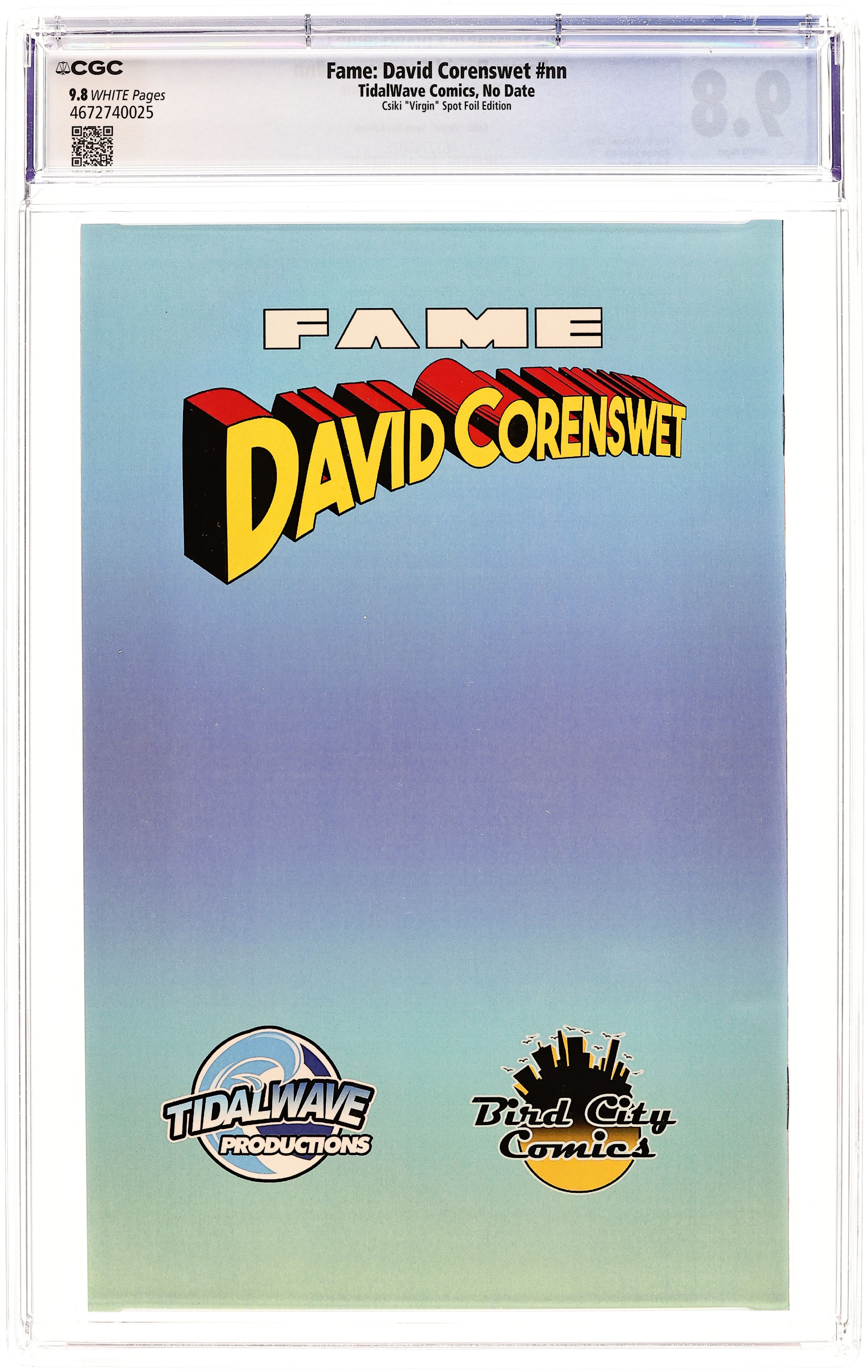 Bird City Comics Exclusive Spot Foil Edition Virgin Cover by Rob Csiki. Discover the rising star destined to take Hollywood by storm in FAME: David Corenswet! From his early days in Philadelphia to being cast as the next Superman in James Gunn's reboot, this comic book biography traces Corenswet's path through theater, television, and film. Best known for roles in Hollywood, The Politician, and Pearl, David's charisma, talent, and classic movie star looks have captivated a new generation. This 22-page issue in TidalWave Comics' acclaimed "FAME" series celebrates his journey and the legacy he's building. A must-read for fans of film, pop culture, and the next Man of Steel!