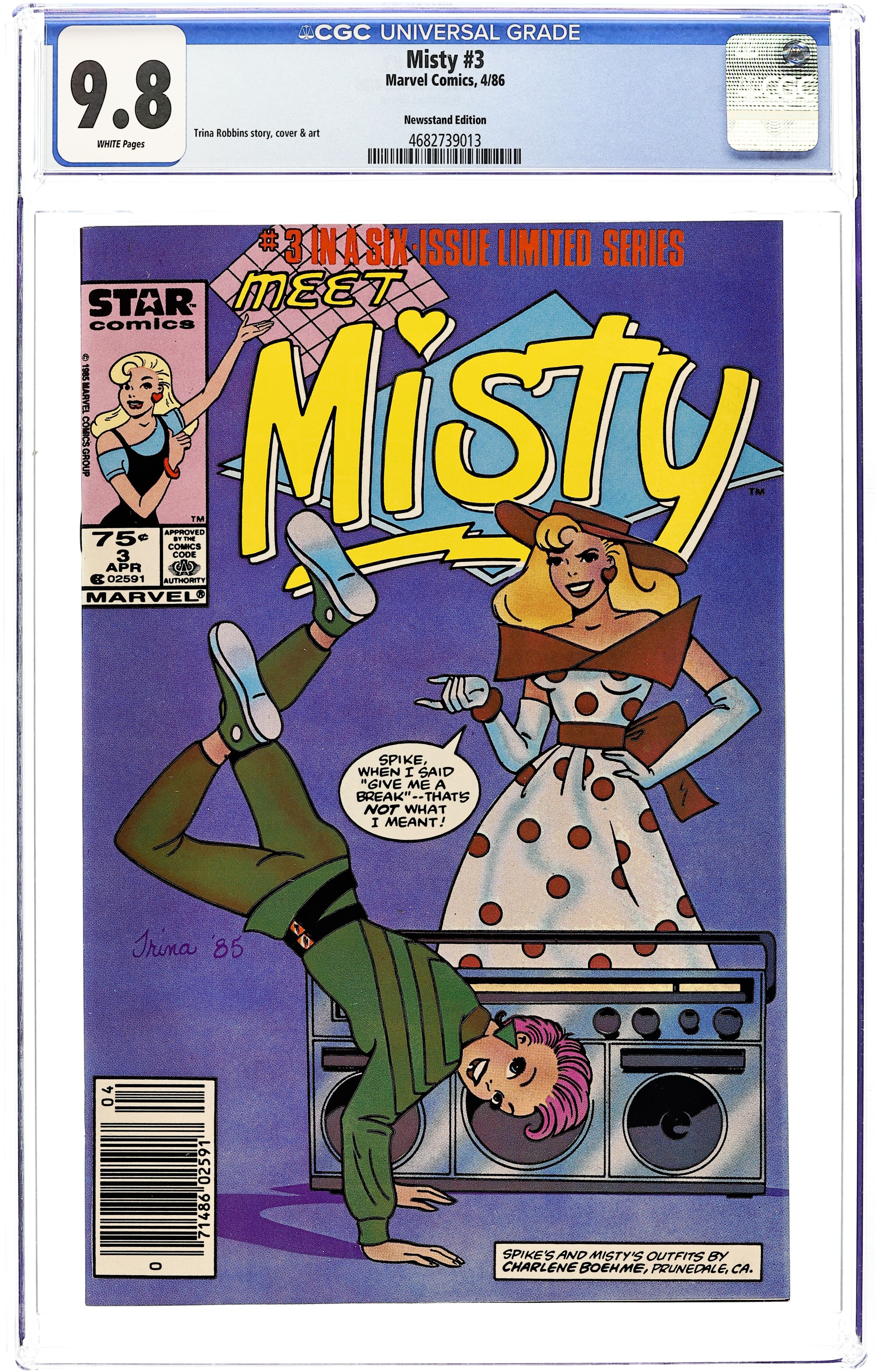 Newsstand Edition. Misty joins forces with her rival Darlene when the two worry about what the arrival of famous teenage actress Lake Lovelock will do to them in With A Friend Like Darlene Who Needs Enemies? Then in Christmas Magic, it's the Christmas season and Misty and her friends have to deliver a letter they received by mistake to a lady everybody thinks is an old witch living in a haunted house. But Misty and her friends find out the truth about the lady. Scripts and art by Trina Robbins. Issue also has fashion pinup pages with Misty and other characters. Cover price $0.75.
