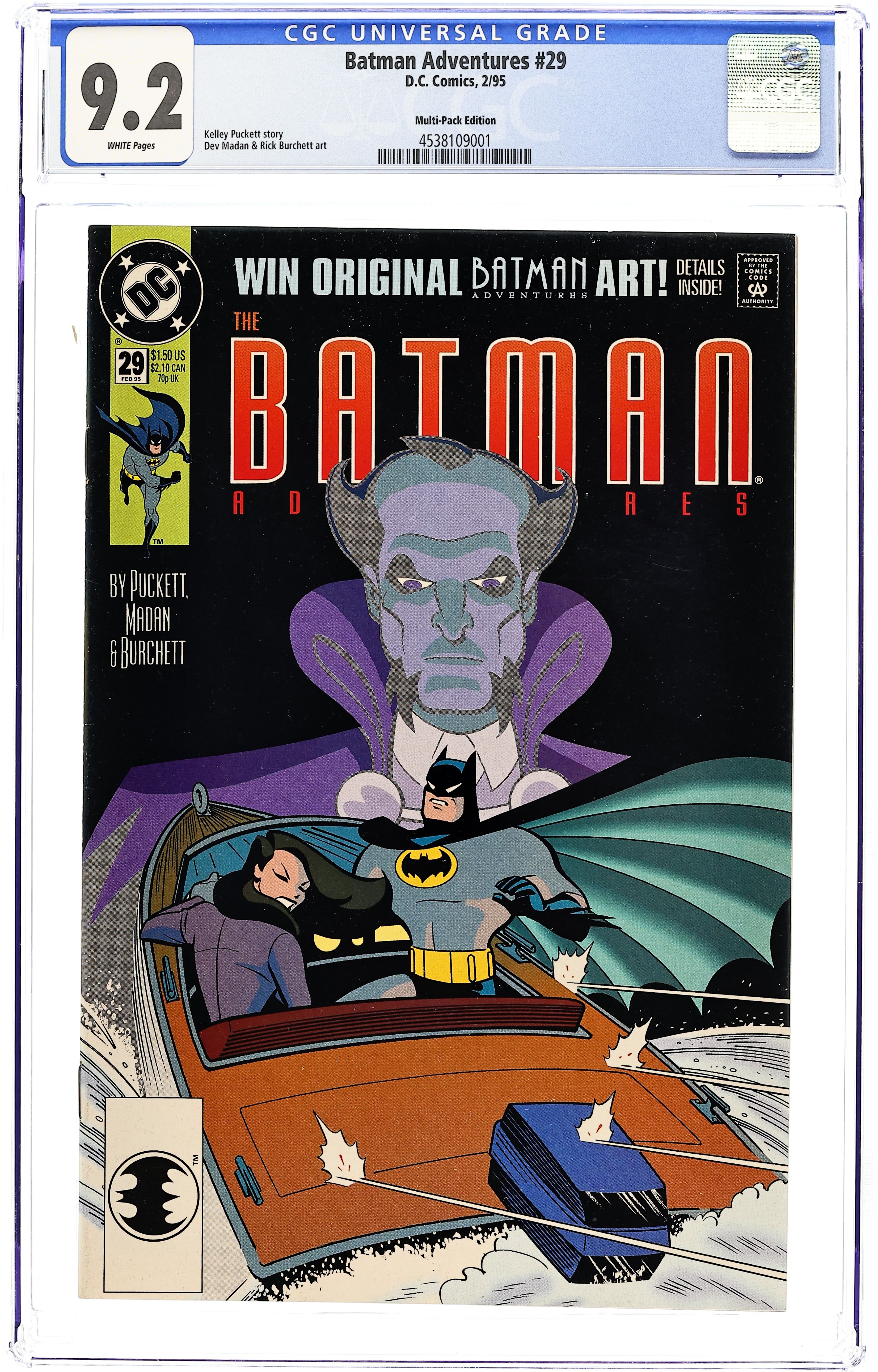 Multi-Pack Edition. "Demon Seed." Ra's Al Ghul disappears, but a new villain takes his place. Batman and Talia investigate. Based on Batman The Animated Series. Script by Kelley Puckett. Art by Dev Madan and Rick Burchett. Cover by Dev Madan and Rick Burchett. Cover price $1.50.