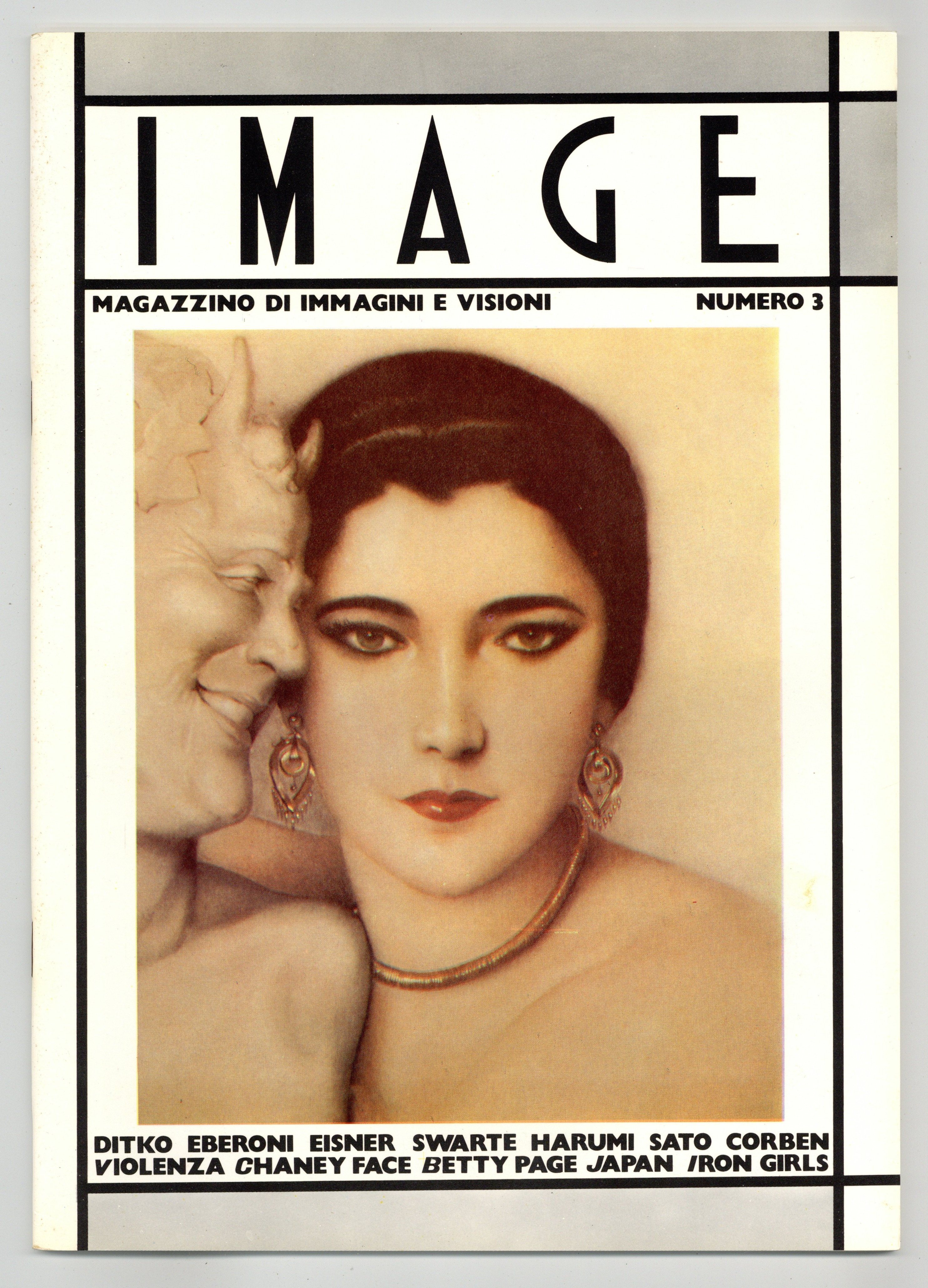 Italian Series. February, 1984. Articles on comics, illustration, photography and graphic culture, as well as comic stories. Cover by Alberto Vargas. Betty Page article. Artists include Steve Ditko, Richard Corben, Will Eisner, Milo Manara, Eneg/Bilbrew, Harumi Yamaguchi and more. 9-1/4" x 13", 52 pages, B&W, Italian language.