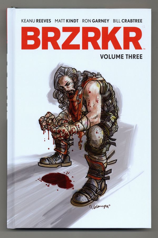 Hardcover - Volume 3 - 1st printing. Collects Brzrkr (2021 Boom) #9-12. Written by Keau Reeves and Matt Kindt. Art by Ron Garney. Cover by Rafael Grampá. Uncover the ancient mysteries of our anti-hero's origins and his final fate! As B.'s full fury is unleashed, a new discovery promises to bring the answers he's been seeking for centuries. But as the team travels to finally uncover the mysteries of B.'s birth, is he finally near the end of his fatal goal, or will his violent efforts be in vain? Written by the iconic Keanu Reeves and New York Times bestselling writer Matt Kindt (Folklords, Grass Kings), and illustrated by acclaimed artist Ron Garney (Wolverine, Captain America), the final epically brutal chapter unfolds, soon to be adapted for Netflix! Hardcover, 144 pages, full color. Mature Readers
