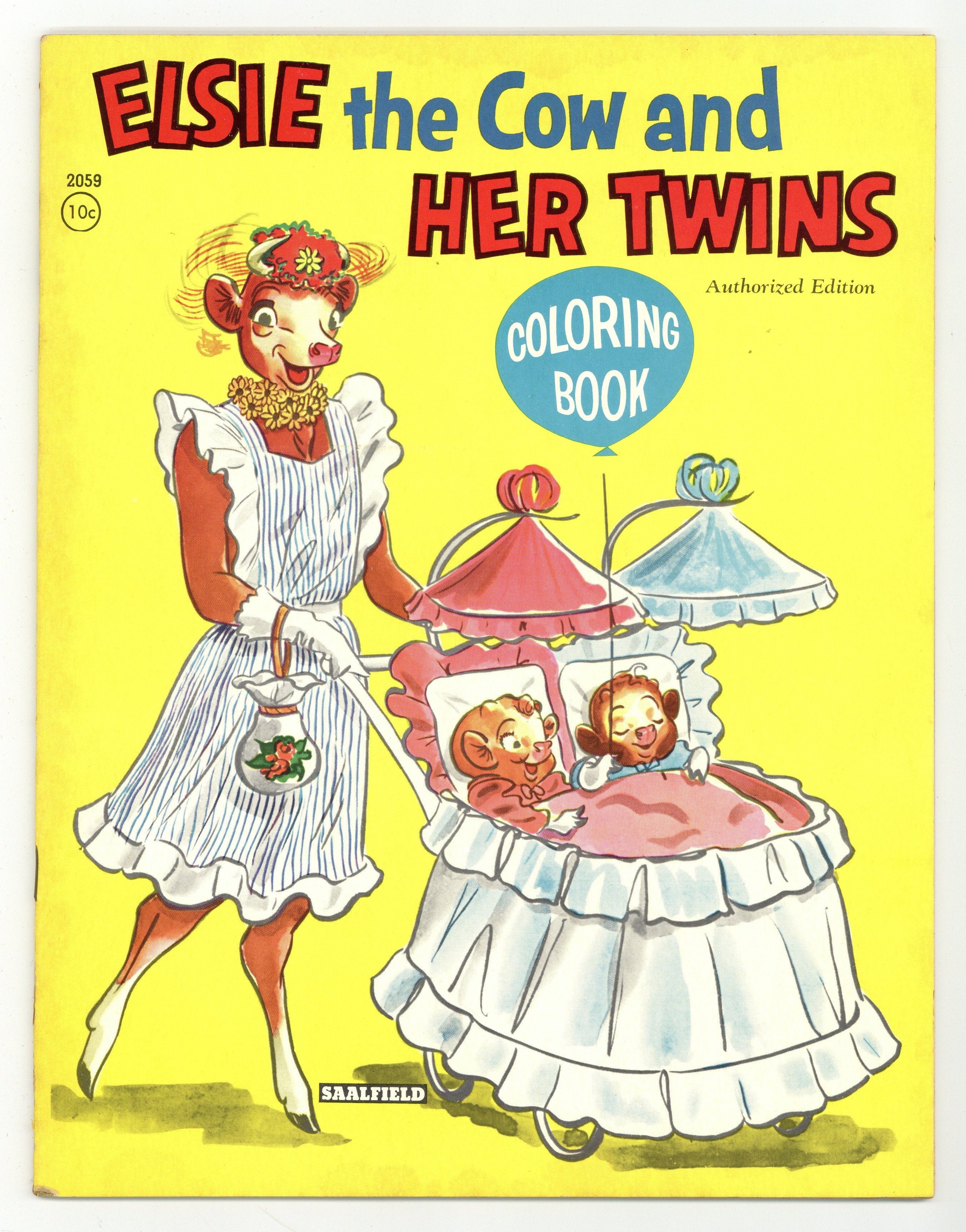 Coloring Book featuring The Borden Company's mascot, Elsie, and her baby twins. 8 1/4" X 10 3/4". 28 pages. B&W. Cover price $0.10.