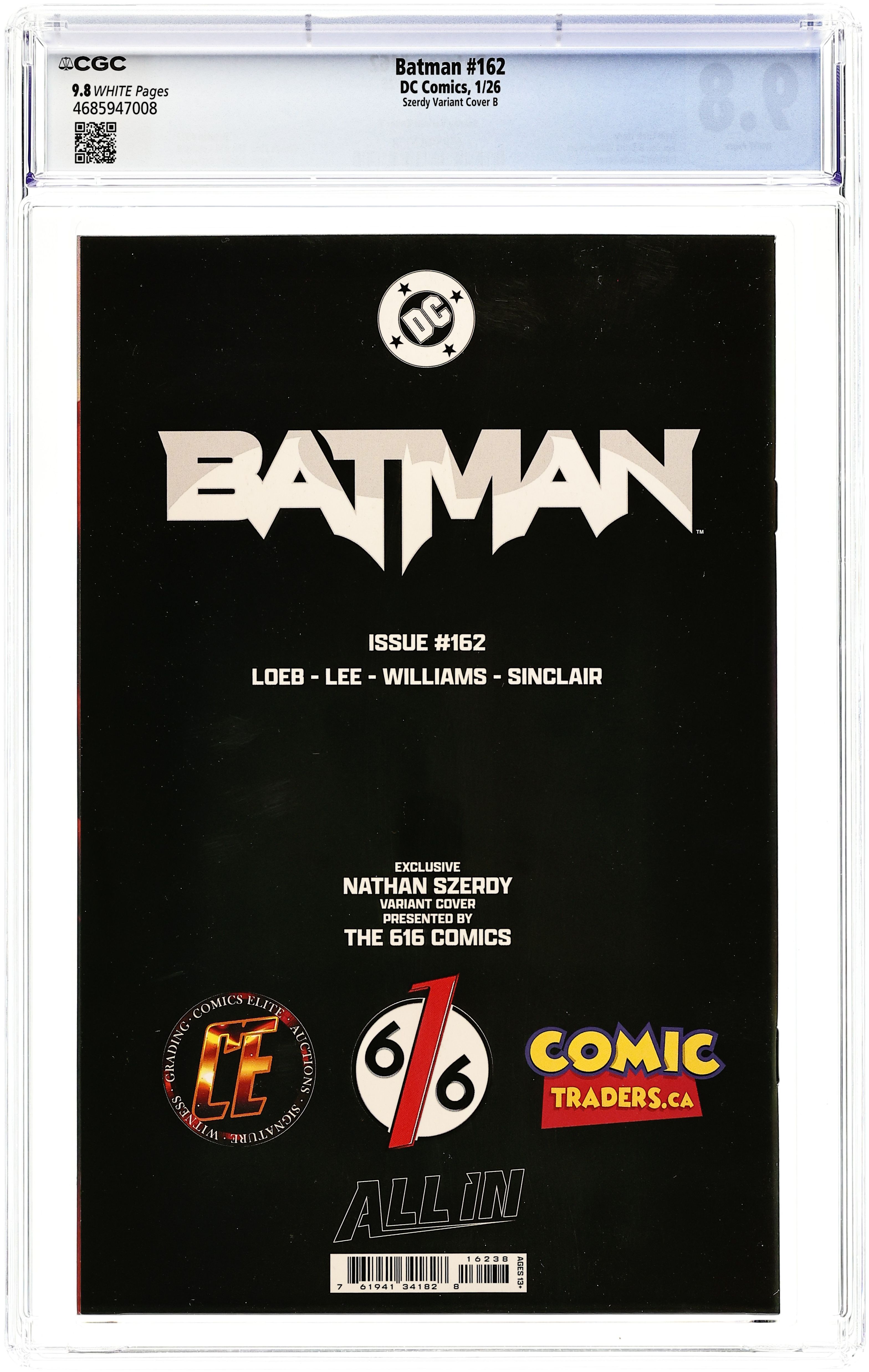 The 616 Comics, Comics Elite, and Comic Traders Exclusive B&W Sketch Edition Virgin Cover by Nathan Szerdy. (W) Jeph Loeb (A) Jim Lee H2SH WITH JEPH LOEB AND JIM LEE PART 5! Batman versus the Bat-Family! Whose side are you on? 40 pages, full color, rated 13+.