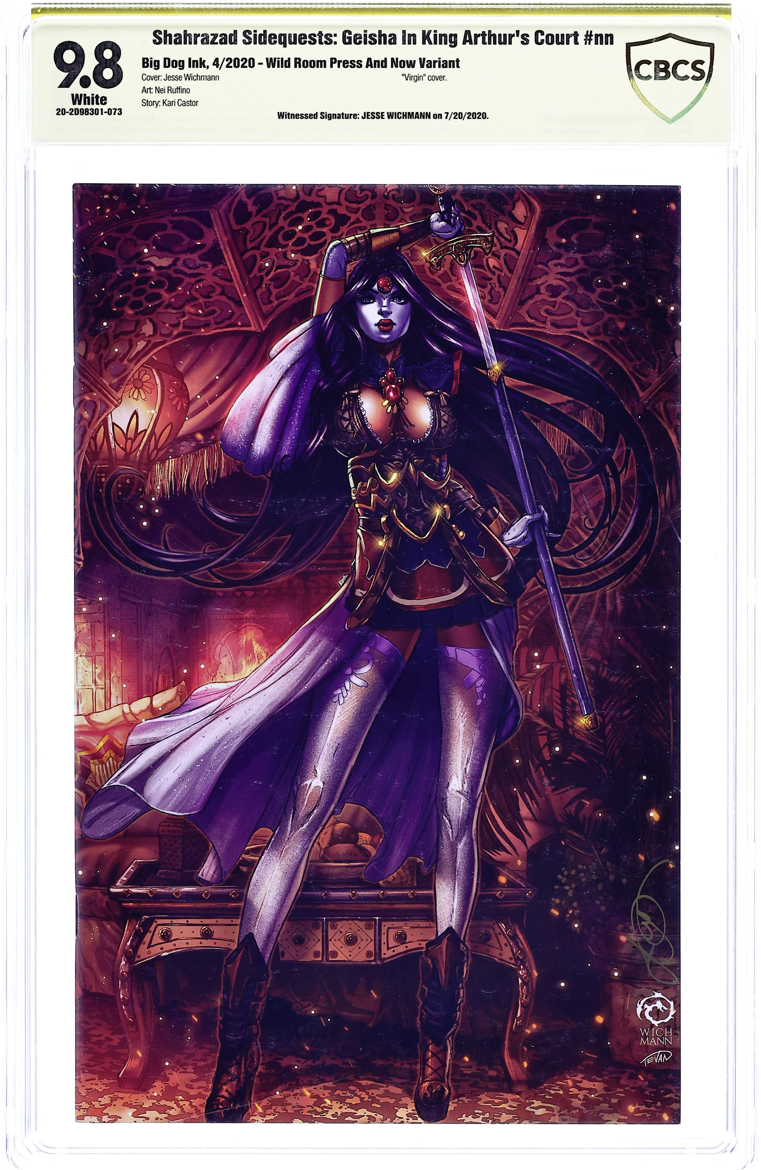Wild Room Press "...And Now" Edition Virgin Cover by Jesse Wichmann - Limited to 200 copies. The Geisha in King Arthur's Court. Story by Kari Castor. Art by Nei Ruffino. NOTE: Generic image is of a signed copy, this does not necessarily reflect all copies.