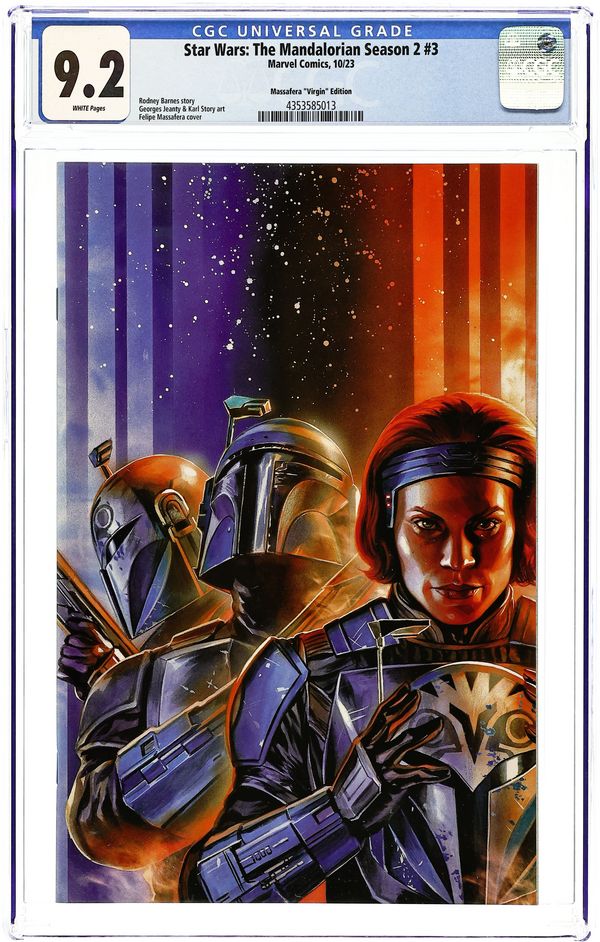 Epic Nation, ComicXposure, and Big Time Collectibles Exclusive Virgin Cover by Felipe Massafera. Written by Rodney Barnes. Art by Georges Jeanty. "THE HEIRESS"! THE MANDALORIAN braves high seas and meets unexpected allies. Introducing BO-KATAN KRYZE, KOSKA REEVES and AXE WOVES! 36 pages, full color. Rated T Cover price $4.99.