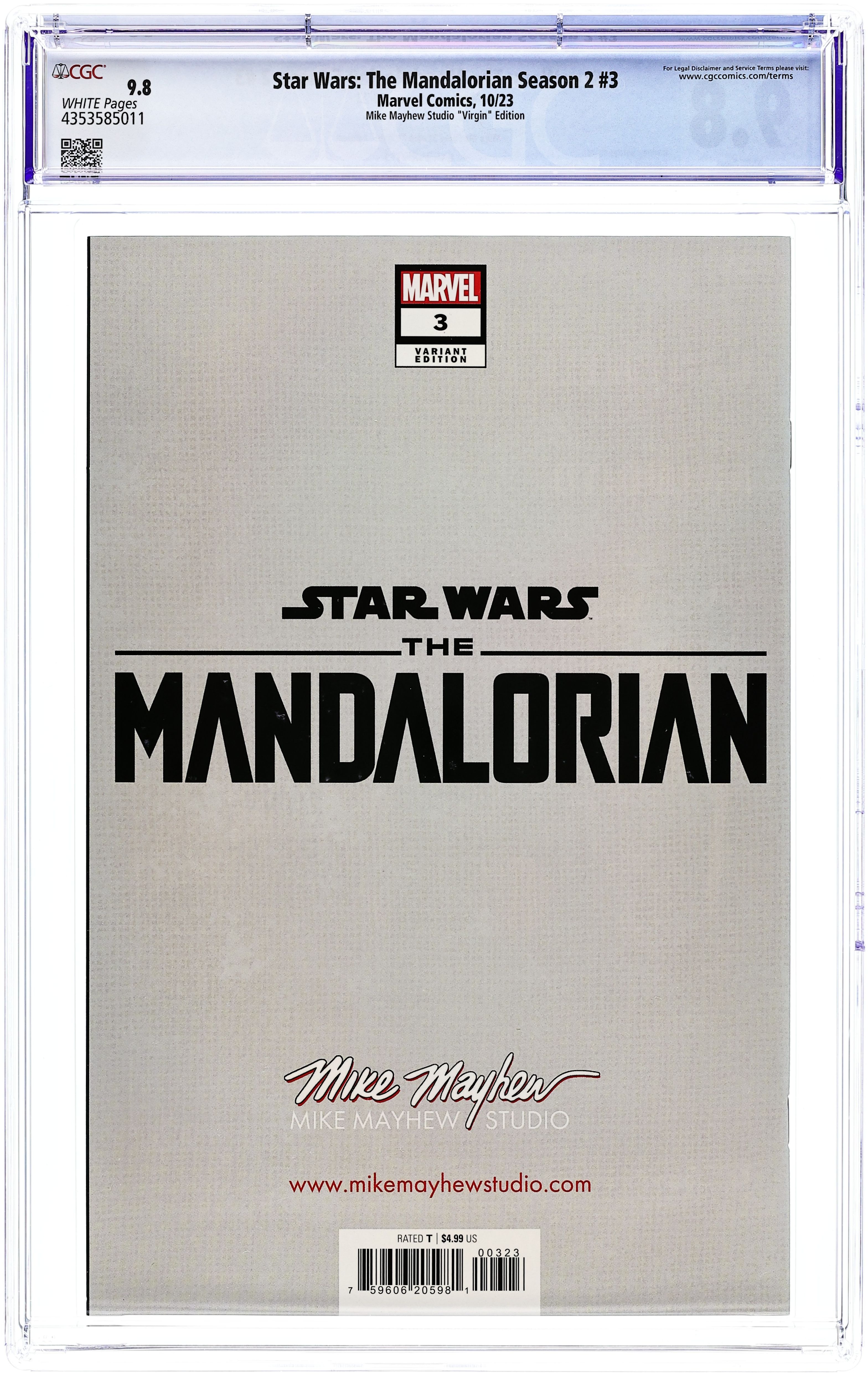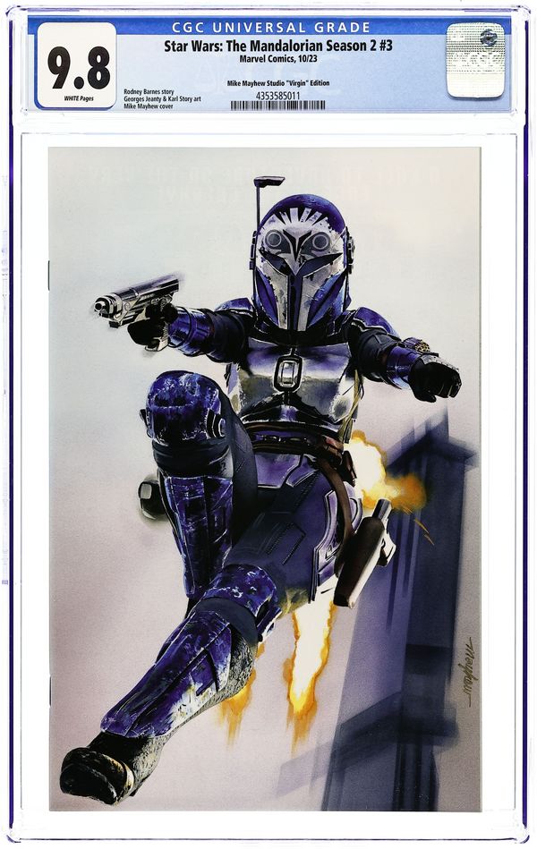 Mike Mayhew Studio Exclusive Virgin Cover by Mike Mayhew. Written by Rodney Barnes. Art by Georges Jeanty. "THE HEIRESS"! THE MANDALORIAN braves high seas and meets unexpected allies. Introducing BO-KATAN KRYZE, KOSKA REEVES and AXE WOVES! 36 pages, full color. Rated T Cover price $4.99.