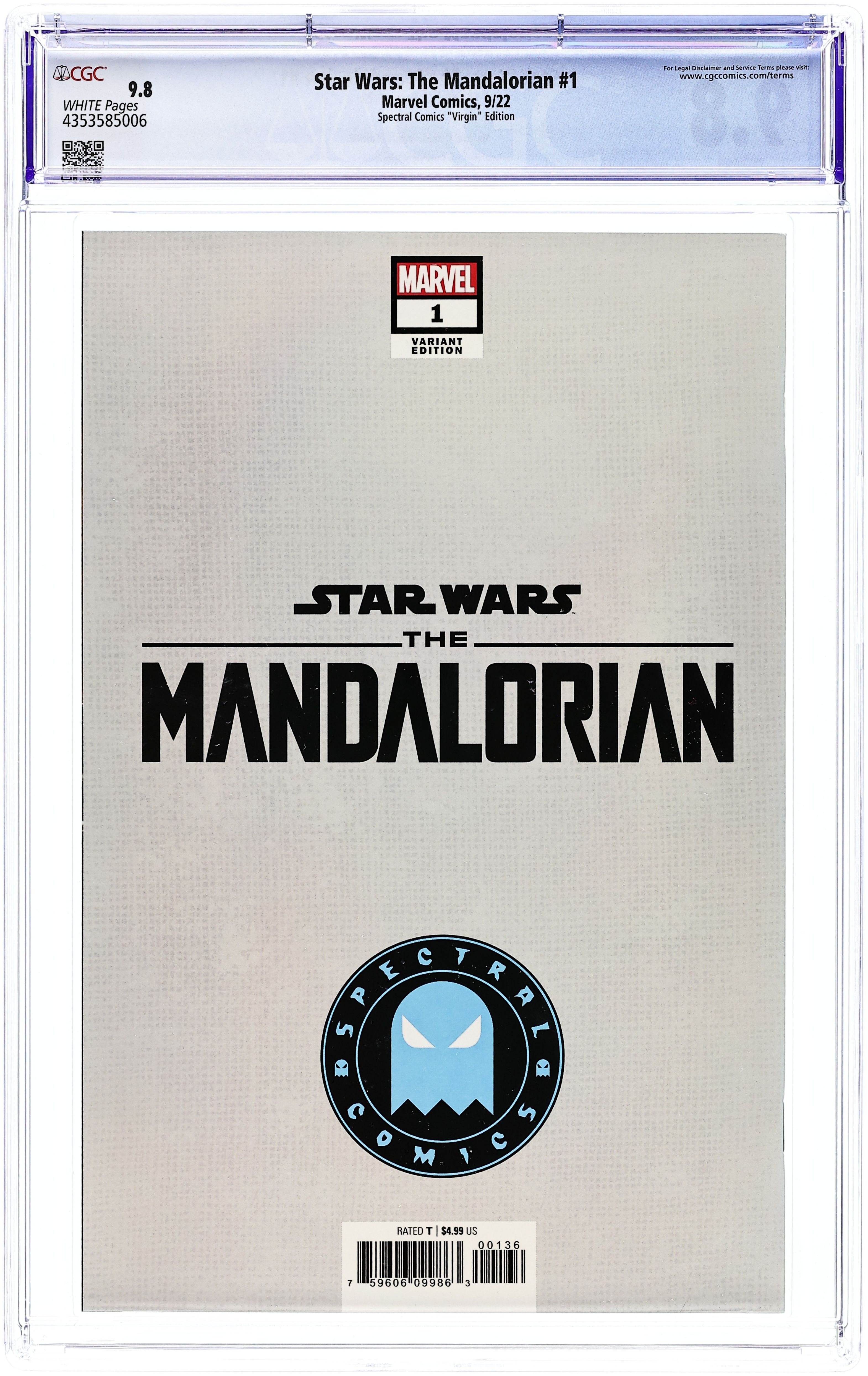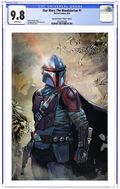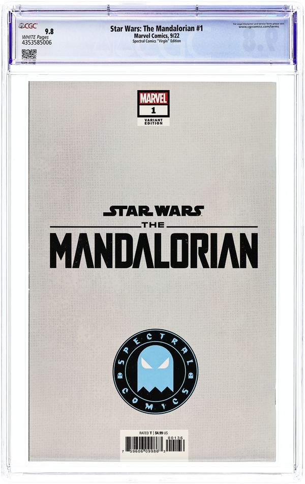 Spectral Comics Exclusive Virgin Cover by Sara Pichelli. Written by Rodney Barnes. Art by Georges Jeanty. For the first time, THE MANDALORIAN arrives in comics! The Mandalorian bounty hunter tracks a target for a well-paying, mysterious client. Witness the introduction of Din Djarin and the first meeting between the Mandalorian and the Child! 40 pages, full color. Rated T