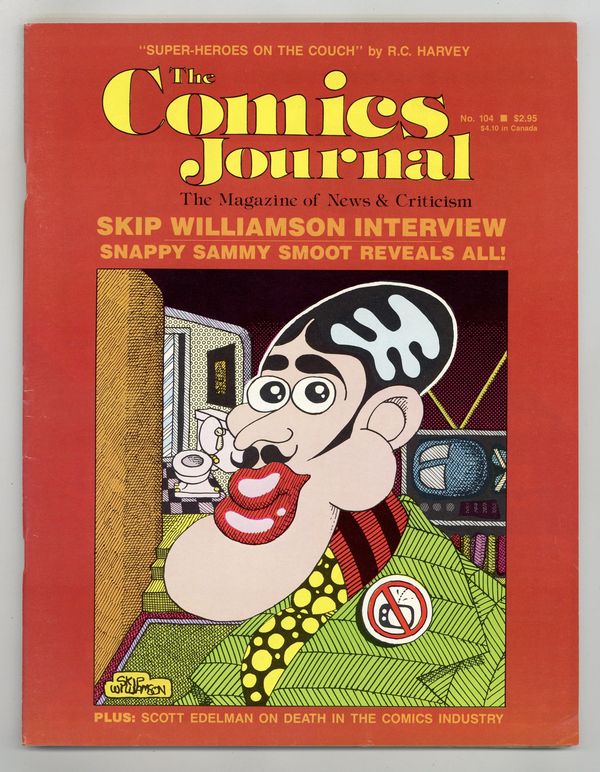 Interviews with underground legends Justin Green and Skip Williamson. R.C. Harvey psychoanalyzes superheroes. C.C. Beck on Picasso. Death and ethics in the comics industry. Plus reviews, columns, letters, and news. Cover by Williamson. Black and white. Cover price $2.95.