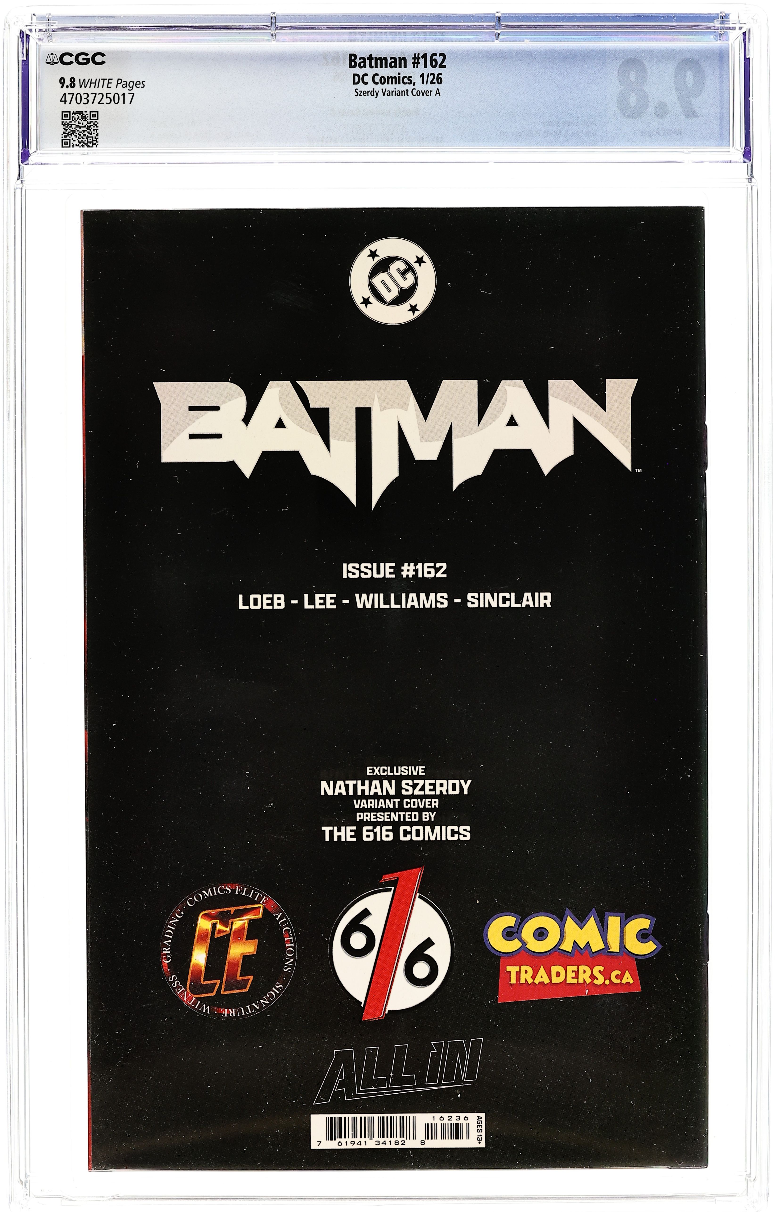 The 616 Comics, Comics Elite, and Comic Traders Exclusive Variant Cover by Nathan Szerdy. (W) Jeph Loeb (A) Jim Lee H2SH WITH JEPH LOEB AND JIM LEE PART 5! Batman versus the Bat-Family! Whose side are you on? 40 pages, full color, rated 13+.