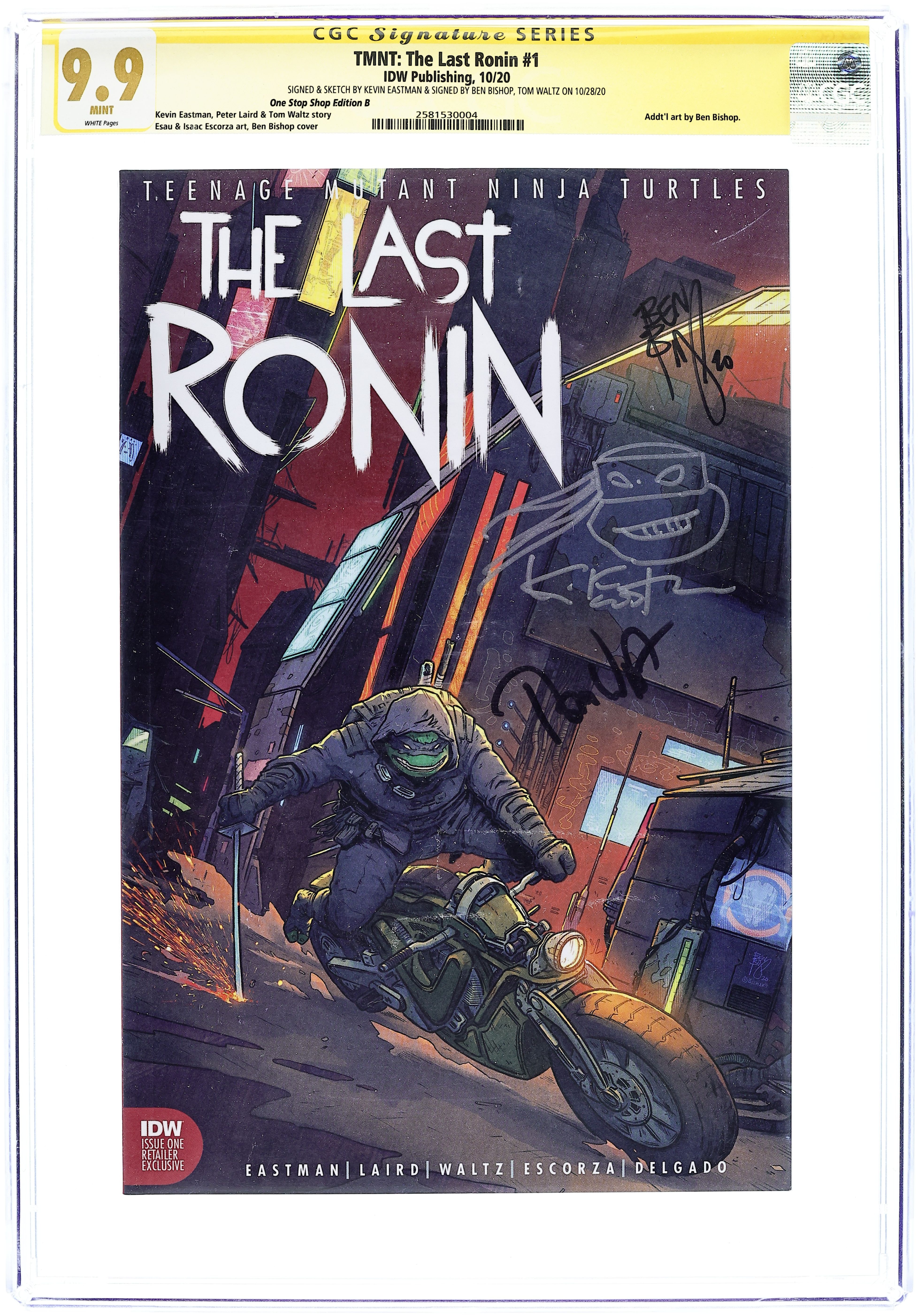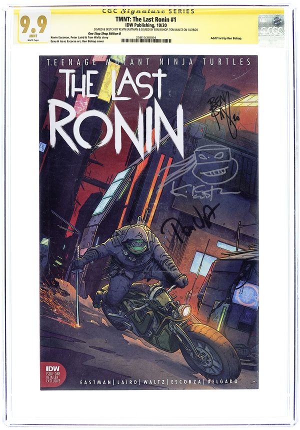 - Signed & Sketch by Kevin Eastman & Signed by Ben Bishop, Tom Waltz on 10/28/20. One Stop Shop Edition B.